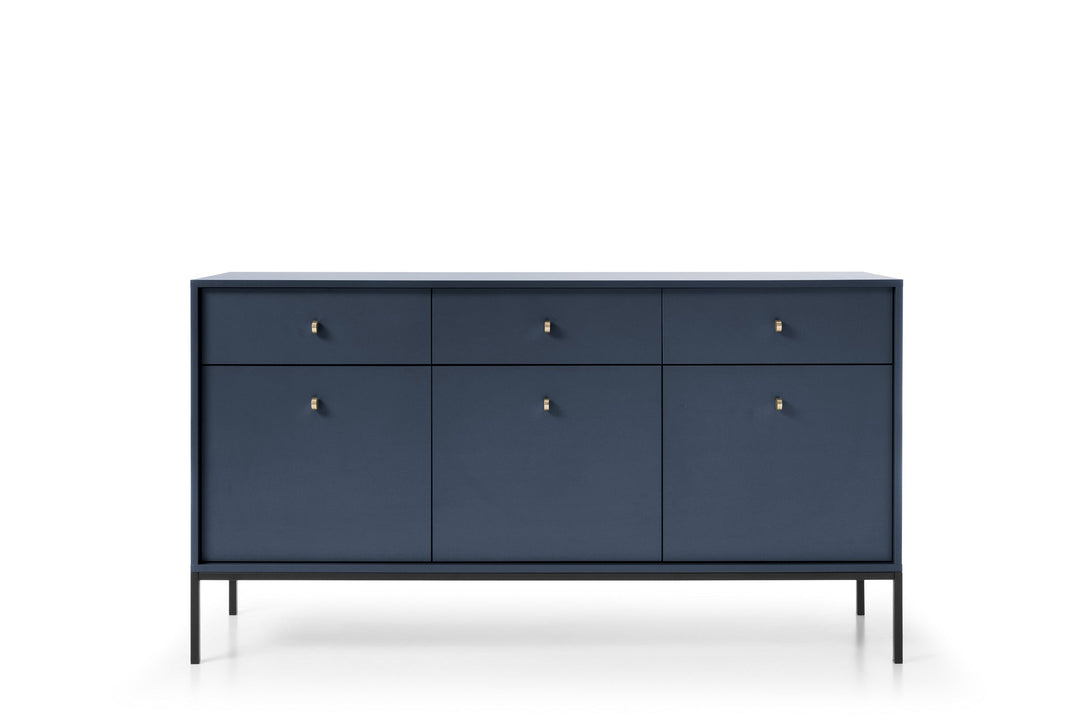 Die MONO Kommode vereint modernes Design mit funktionaler Eleganz. Mit ihrer klaren Linienführung, dem stilvollen navyblauen Frontbild und den robusten Metallfüßen passt sie perfekt in zeitgemäße Wohnräume und bietet zugleich großzügigen Stauraum. Das Möbelstück überzeugt durch hochwertige Verarbeitung: Korpus und Front bestehen aus 16 mm starker, laminierter Platte mit schützender ABS-Kante, während stabile Metallgriffe und ein schwarzmatter Metallrahmen die ästhetische und funktionale Vollendung garantieren.