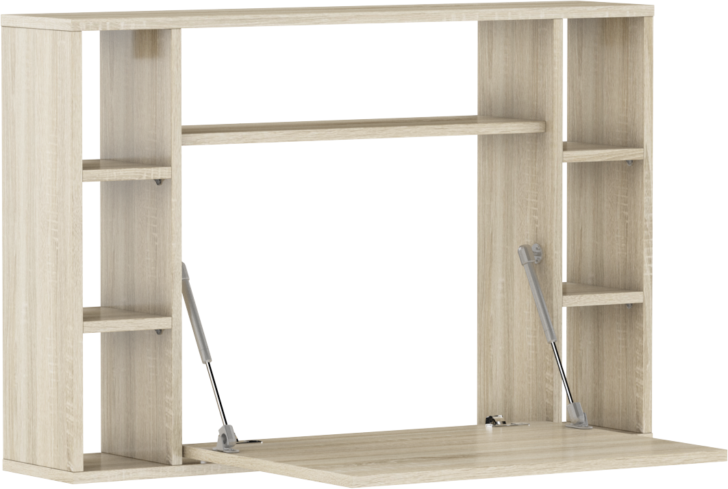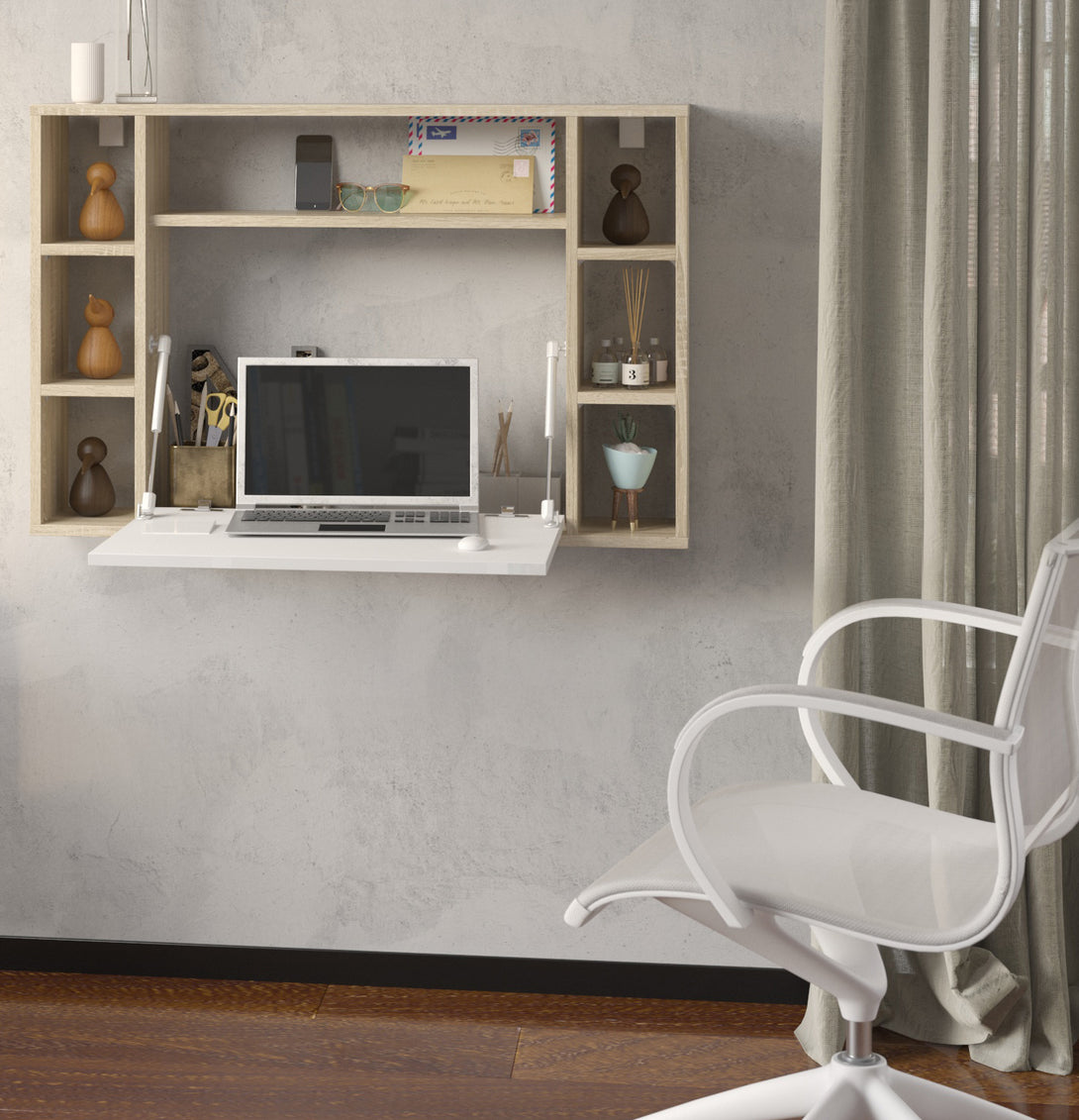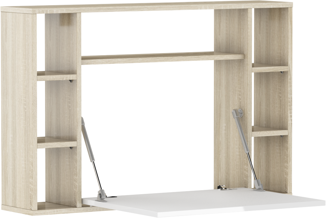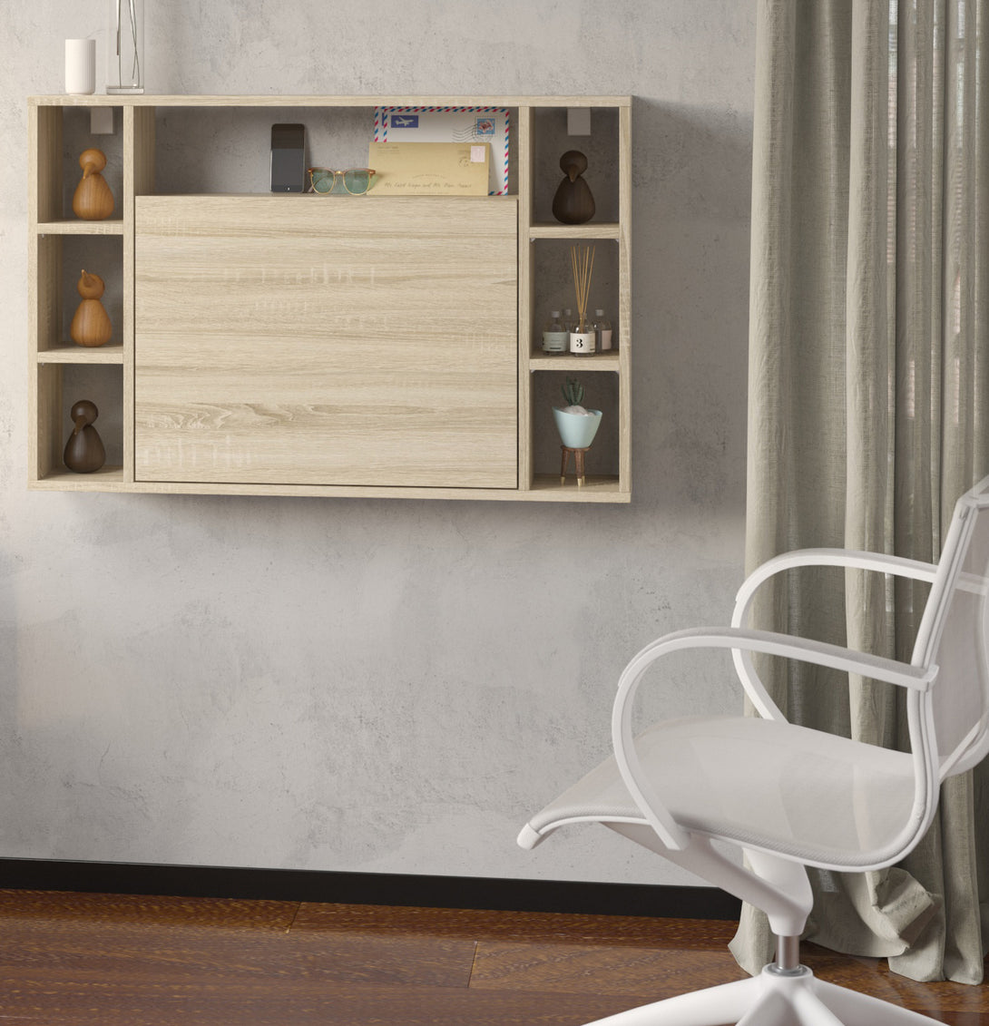 Der MUSE Wandklapptisch vereint elegantes Design mit hoher Funktionalität. Im geschlossenen Zustand dient er als stilvolles Regal mit sieben offenen Fächern für Bücher oder Dekoartikel. Geöffnet verwandelt er sich in einen praktischen Arbeitsplatz mit einer stabilen Arbeitsplatte – ideal für das Homeoffice oder kreative Bereiche wie das Jugendzimmer oder Atelier.