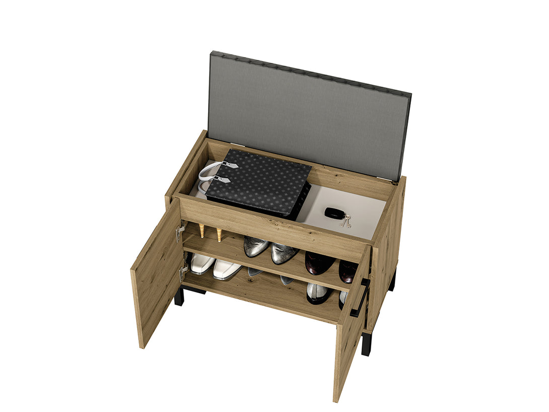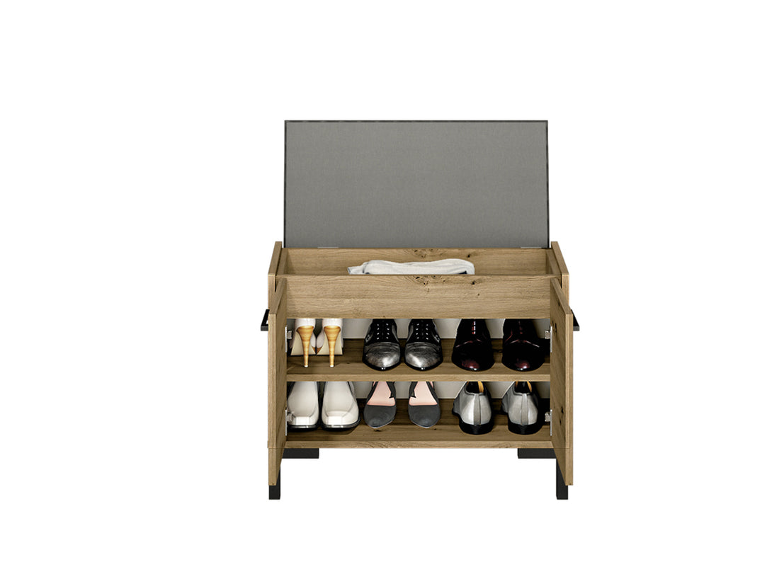 Der NEVIO 04 Schuhschrank ist die perfekte Lösung für kleinere Flure oder Eingangsbereiche, in denen Stil und Funktionalität gefragt sind. Mit seiner kompakten Höhe von 54 cm und der eleganten Holzoptik fügt sich dieses Modell harmonisch in jedes moderne Interieur ein. Die stabile Konstruktion aus hochwertiger laminierter Spanplatte und widerstandsfähigen ABS-Kanten bietet Langlebigkeit und Alltagstauglichkeit – ideal für anspruchsvolle Nutzer.