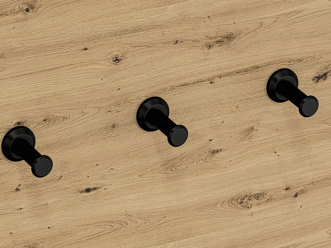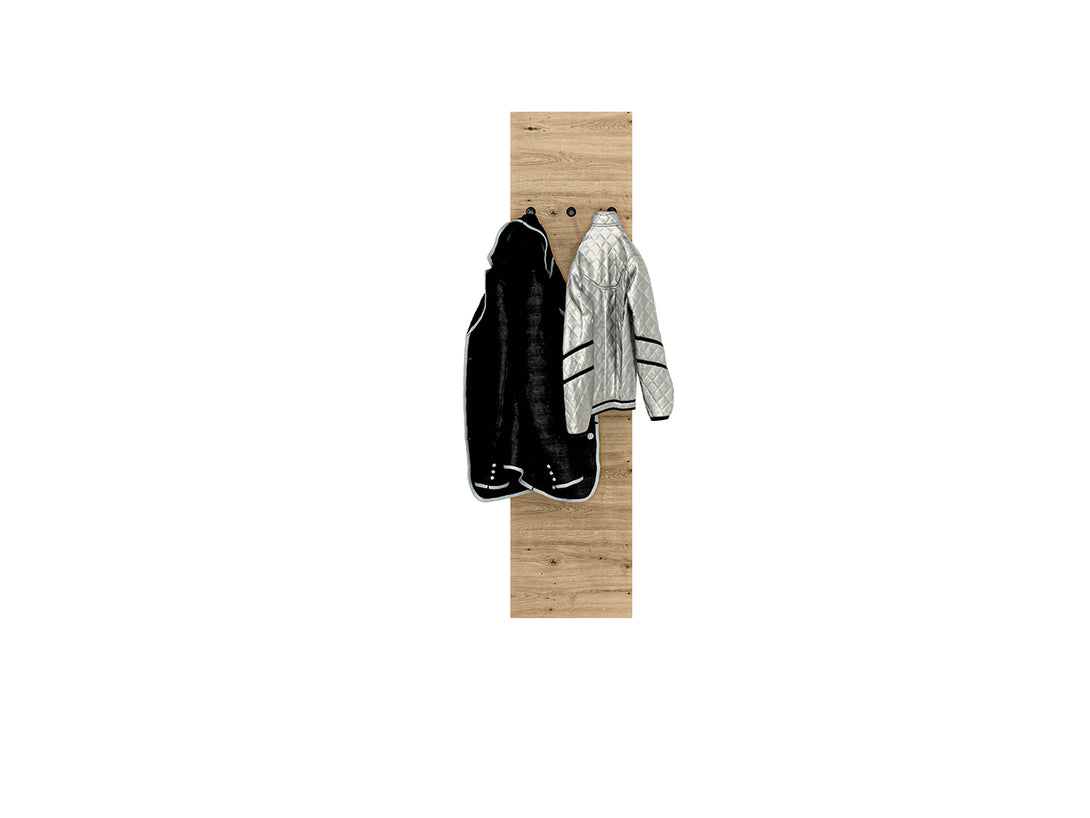 Die NEVIO 07 Garderobenleiste ist eine platzsparende und elegante Lösung für jede Diele. Mit ihrer schmalen Silhouette und einer Höhe von 145 cm bietet sie ausreichend Aufhängemöglichkeiten, ohne dabei viel Platz in Anspruch zu nehmen. Die natürliche Holzoptik in Artisan Eiche verleiht dem Raum eine warme, moderne Ausstrahlung und lässt sich harmonisch mit weiteren Möbelstücken kombinieren.
