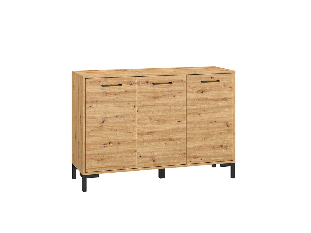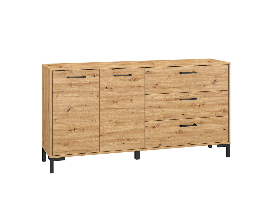 Die NEVIO Kommodenserie umfasst die Modelle NEVIO 10, NEVIO 12, NEVIO 13 und NEVIO 14, die alle durch hochwertiges Design und vielseitige Einsatzmöglichkeiten in jedem Wohnraum überzeugen. Gefertigt aus laminierter Spanplatte in Dąb Artisan mit robusten ABS-Kanten verbinden diese Möbelstücke Langlebigkeit mit zeitloser Eleganz. Die verschiedenen Breiten bieten maßgeschneiderte Stauraumlösungen für unterschiedlichste Anforderungen, während die warme Holzoptik für ein behagliches Ambiente sorgt.