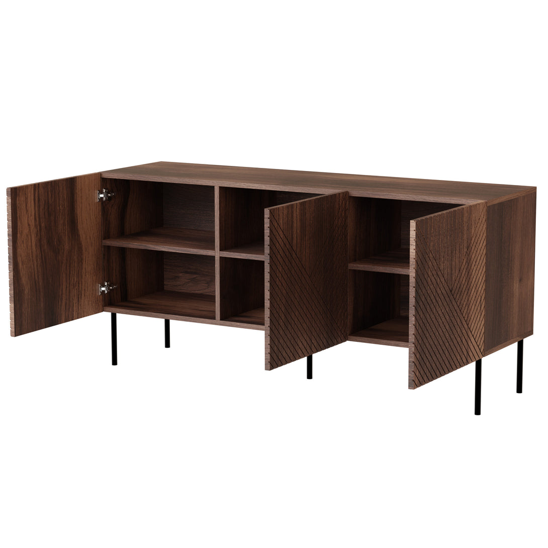 Dank der drei geräumigen Türen und der robusten Metallfüße mit 20 cm Höhe bietet dieses Sideboard nicht nur Stabilität, sondern auch praktischen Stauraum für unterschiedlichste Wohnbereiche. Die hochwertige Verarbeitung und das elegante Finish machen es zur perfekten Ergänzung für moderne Interieurs.