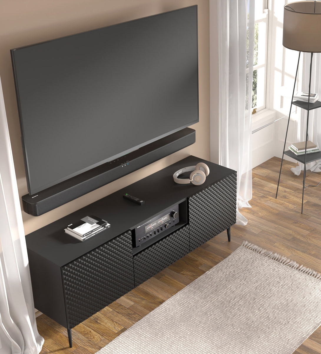 Gefertigt aus hochwertigen Materialien wie gefrästem, foliertem MDF und robuster laminierter Spanplatte überzeugt dieses Modell durch Langlebigkeit und Stabilität. Die schwarzen Kunststofffüße sorgen für sicheren Stand und runden das Gesamtbild stimmig ab. Ideal für stilvolle Wohnräume, in denen Design und Funktion Hand in Hand gehen.