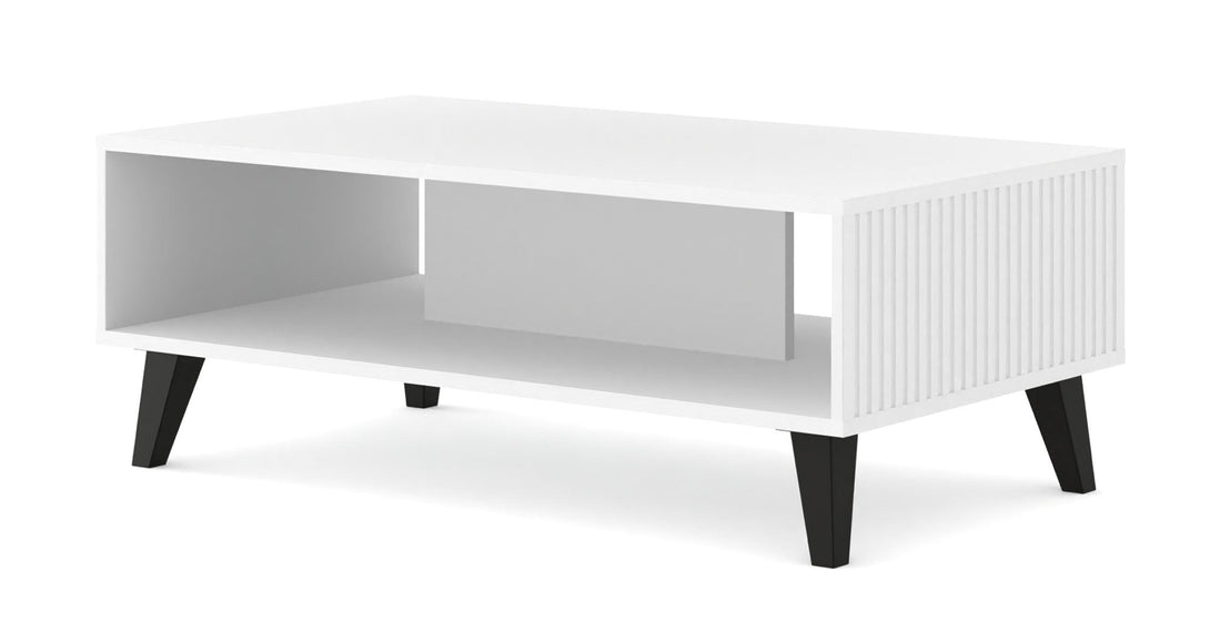 Neben der großzügigen Ablagefläche auf der Tischplatte bietet der Couchtisch eine praktische Zwischenablage, die sich ideal für Zeitschriften, Fernbedienungen oder Tablets eignet. Die hochwertige Verarbeitung aus MDF und Spanplatte gewährleistet Langlebigkeit und Stabilität – ein durchdachtes Möbelstück mit Stil und Funktion.