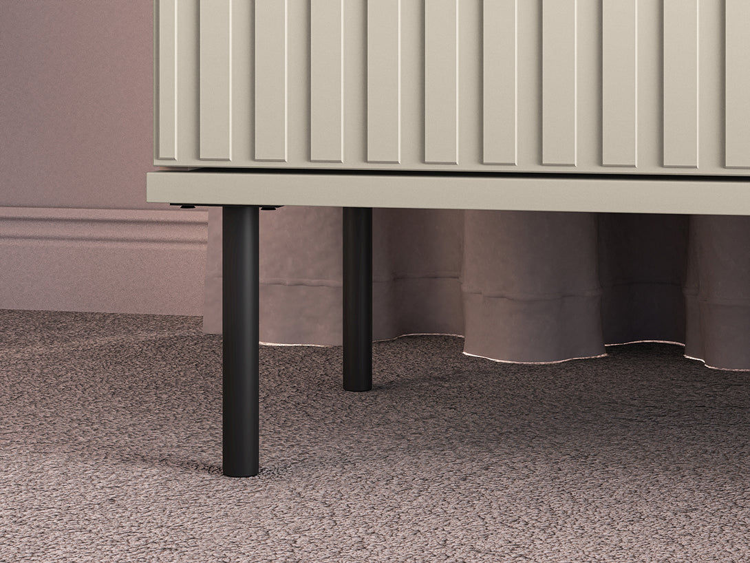 Der SOPHIE 07 Nachttisch ist die perfekte Ergänzung für Ihr Schlafzimmer und sorgt dafür, dass alles Wichtige stets griffbereit bleibt. Eine offene Ablage bietet Platz für Bücher oder Zeitschriften, während die geräumige Schublade zusätzlichen Stauraum für persönliche Gegenstände schafft. Die sorgfältige Gestaltung im Kaschmirdekor mit gefrästen MDF-Fronten, goldfarbenen Griffen und schwarzen Metallfüßen verleiht dem Möbelstück eine moderne Eleganz. Dank der durchdachten Funktionalität ist SOPHIE 07 nicht nur stilvoll, sondern auch praktisch im Alltag.