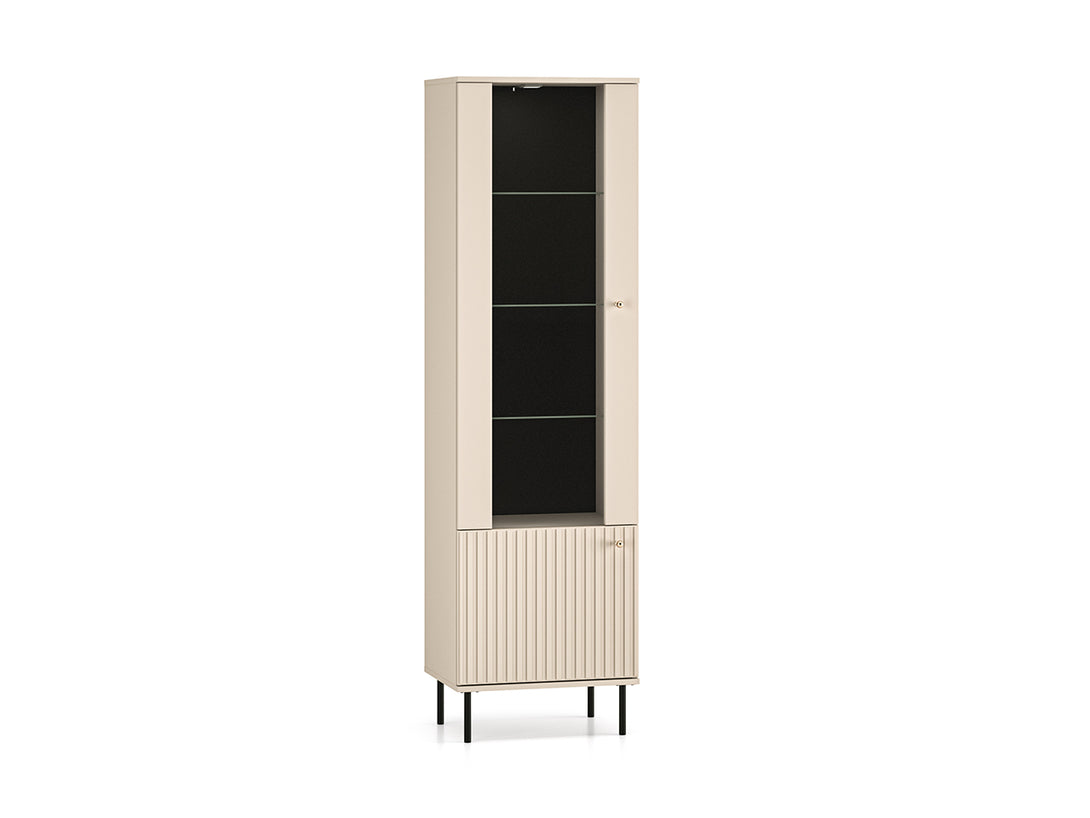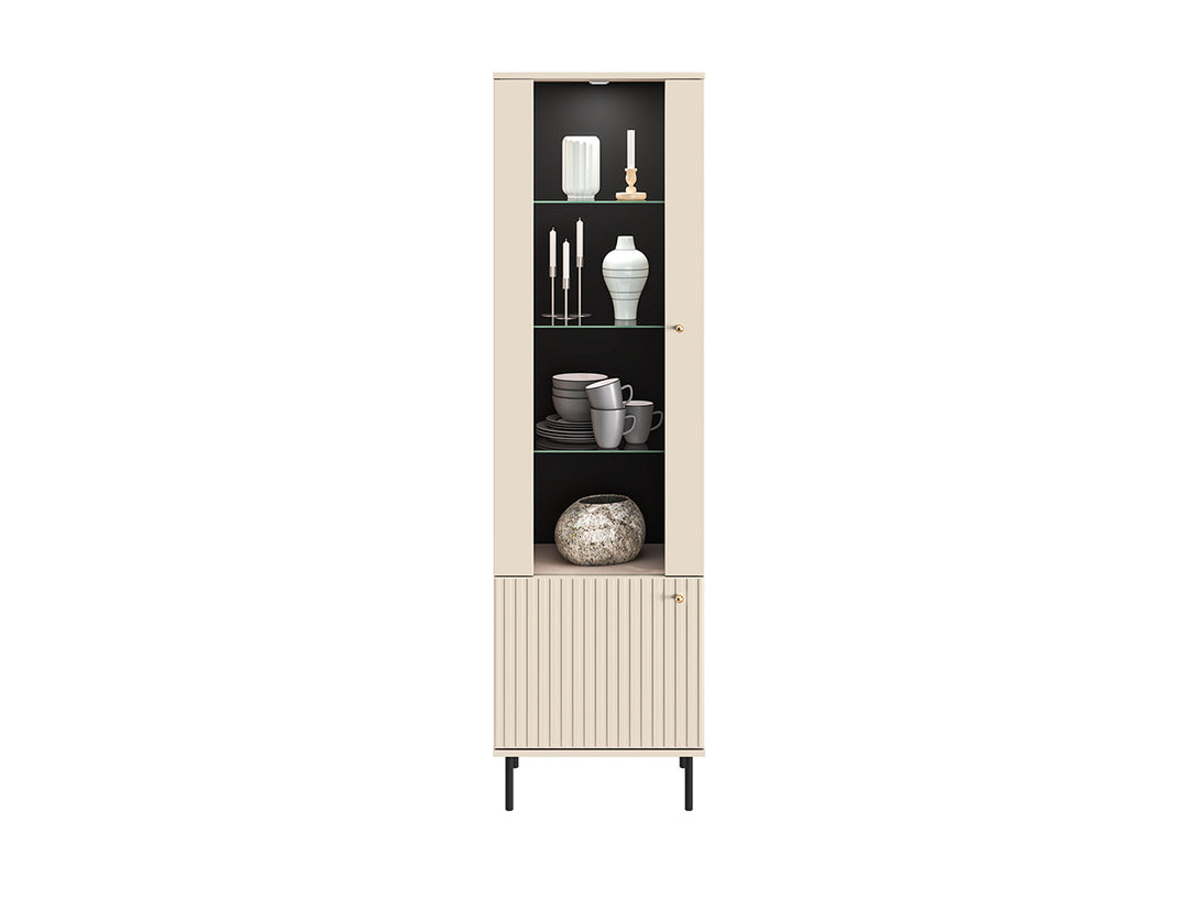 Das SOPHIE Wohnzimmer-Set in Kaschmir-Optik vereint modernes Design mit durchdachter Funktionalität. Bestehend aus zwei stilvollen Vitrinen, einer großzügigen Kommode, einer Wandablage sowie einem praktischen Couchtisch, bietet dieses Set zahlreiche Möglichkeiten zur stilvollen Aufbewahrung und Präsentation Ihrer Lieblingsstücke. Hochwertige MDF-Fronten mit feinen Fräsungen, elegante Griffe in gebürstetem Gold und schwarze, dezente Metallfüße unterstreichen den edlen Charakter dieses Möbelensembles. Dank integrierter LED-Beleuchtung, Soft-Close-Systemen und durchdachter Innenaufteilung erfüllt das Set höchste Ansprüche an Komfort und Alltagstauglichkeit.