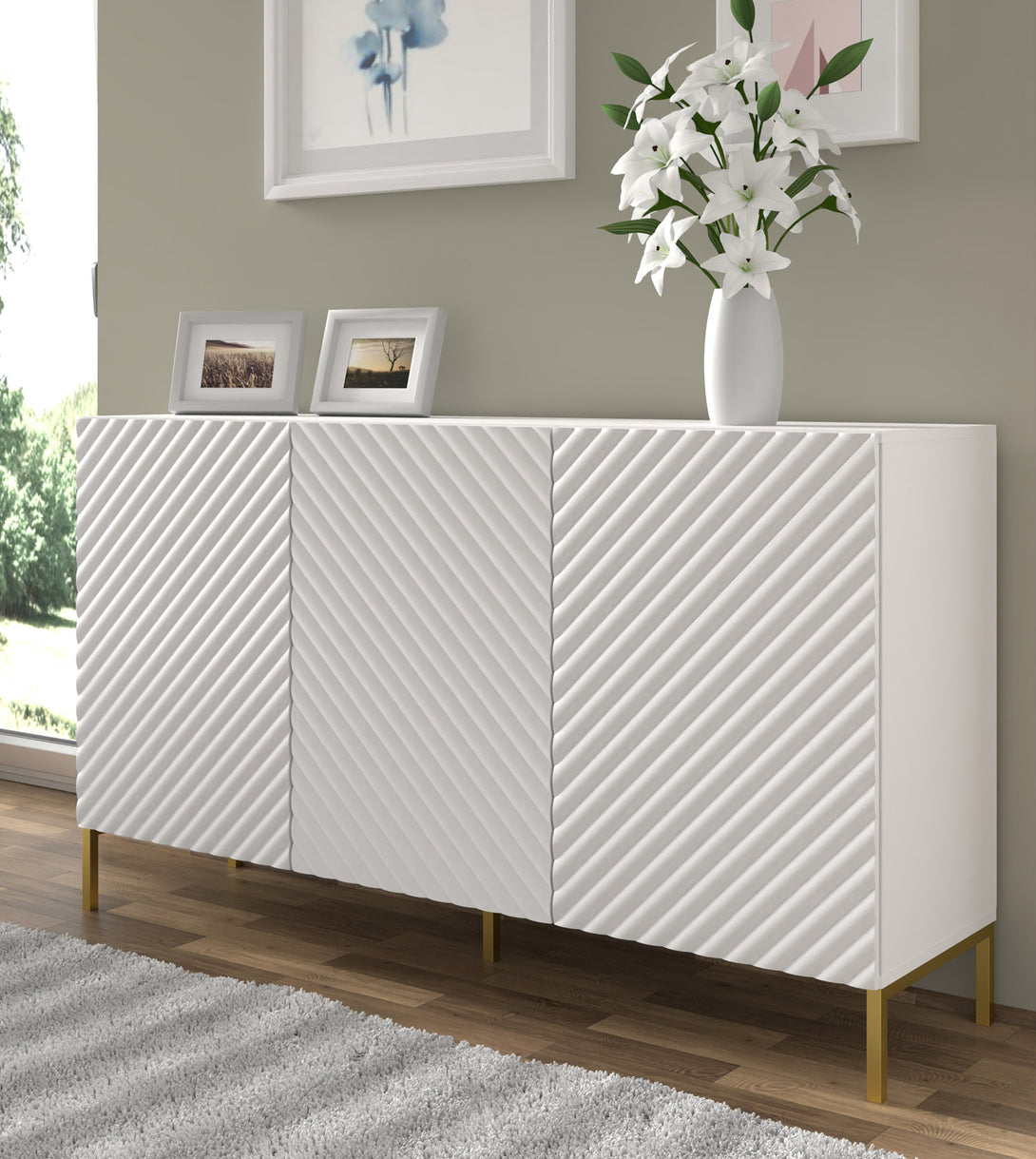 Dank des intelligenten Push-to-Open-Systems und der drei geräumigen Schubladen bietet diese Kommode nicht nur stilvolle Eleganz, sondern auch praktischen Stauraum für Ihre Wohnaccessoires.