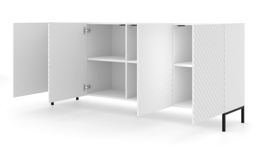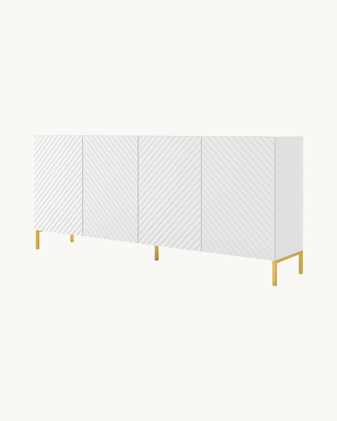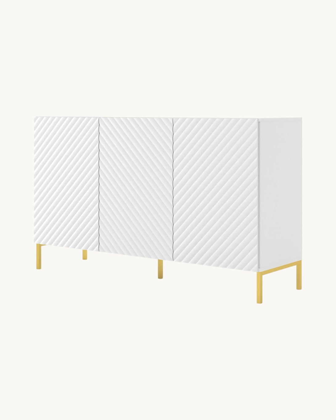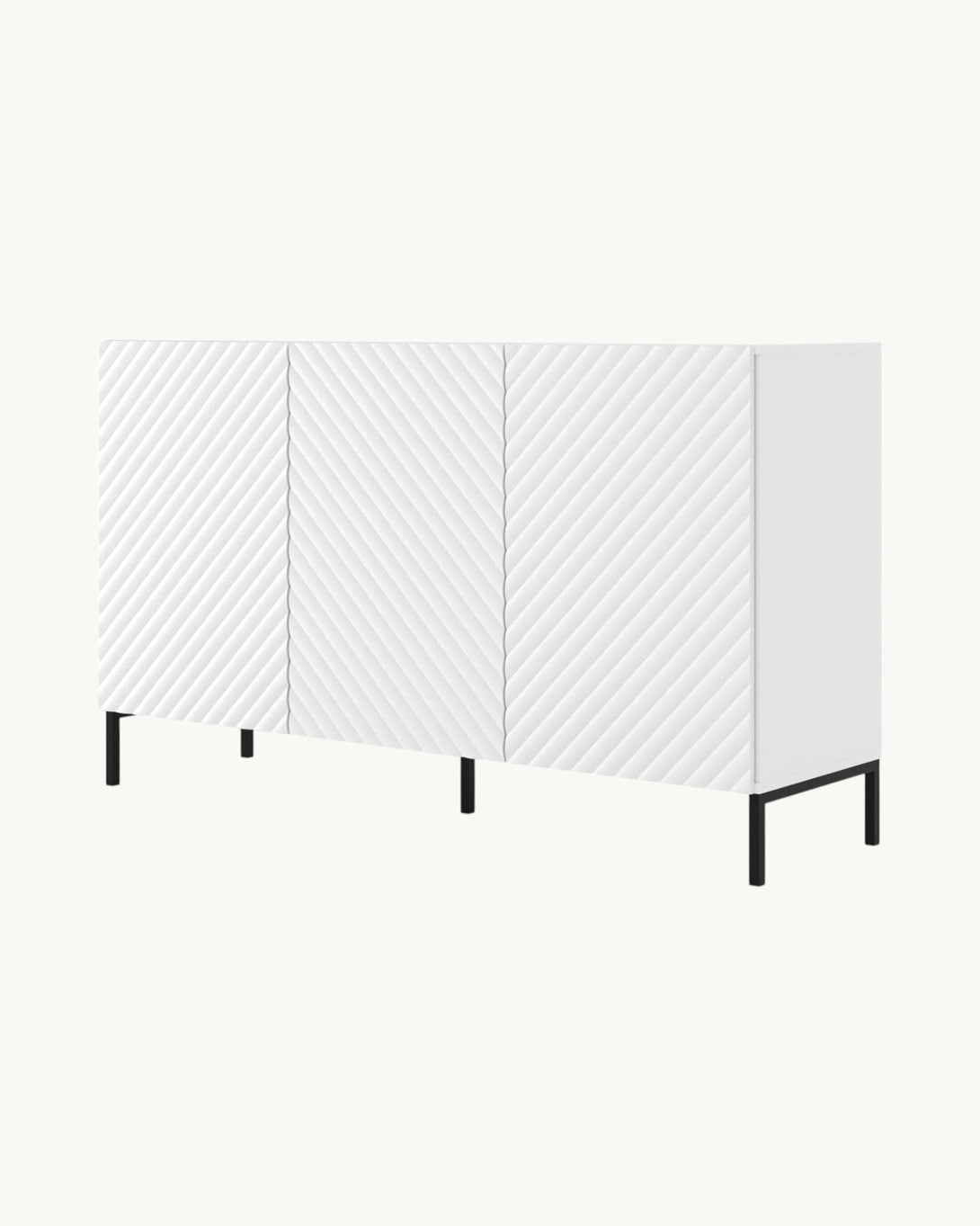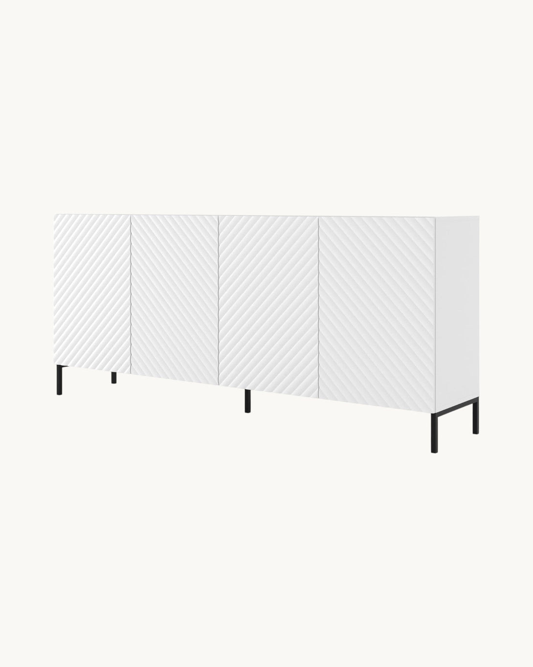 Die SURF 3D Kommode vereint luxuriöses italienisches Design mit modernster Funktionalität. Die einzigartig gefrästen Fronten in Weiß Matt erzeugen durch ihre spiegelnde Anordnung faszinierende Lichteffekte und verleihen jedem Wohnraum exklusiven Charme.