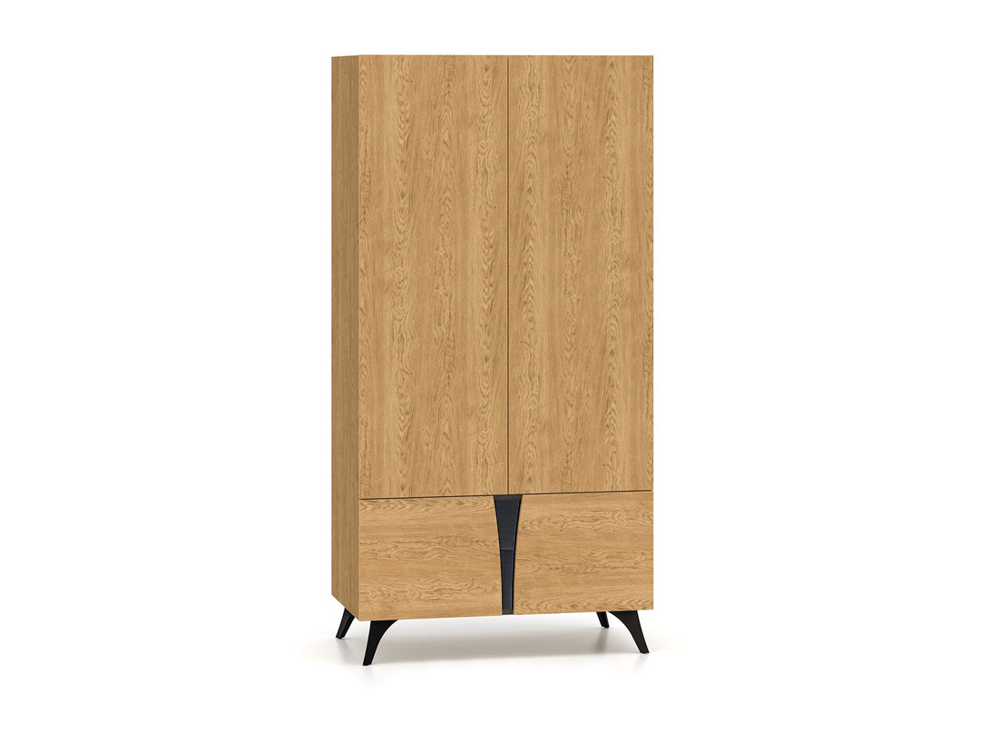 Der Kleiderschrank Toscaniabietet großzügigen Stauraum für Kleidung, Accessoires und Heimtextilien. Ausgestattet mit einer stabilen Kleiderstange über die gesamte Breite lassen sich Mäntel, Anzüge und Kleider bequem aufhängen. Die großen oberen und unteren Ablageflächen ermöglichen zudem die Aufbewahrung von Bettwäsche oder Handtüchern. Dieses Möbelstück verbindet hohe Funktionalität mit modernem Design und fügt sich dank der grifflosen Fronten elegant in jedes Wohnambiente ein. Die Türen lassen sich bequem durch die Push-to-Open-Funktion öffnen, während speziell geformte Metallfüße für Stabilität sorgen.