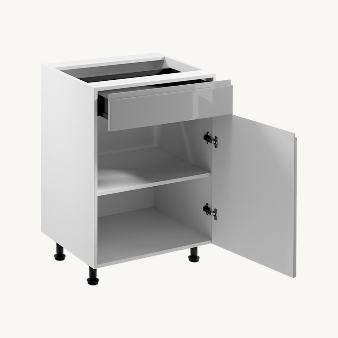 Unterschrank 60 cm Glanzia – D60S1 – Grau / Hochglanz – Moderner Küchenschrank