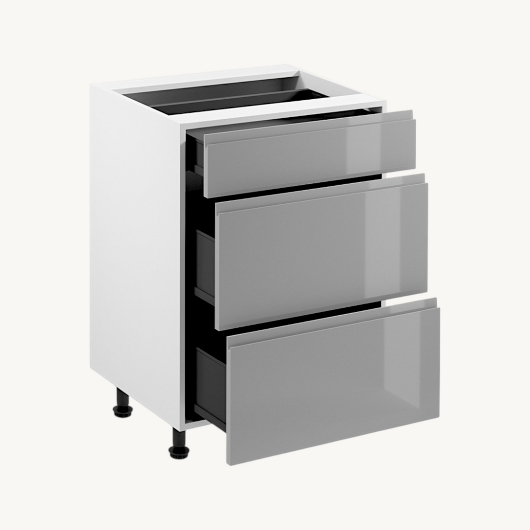 Unterschrank 60 cm Glanzia – D60S3 – Grau / Hochglanz – Moderner Küchenschrank