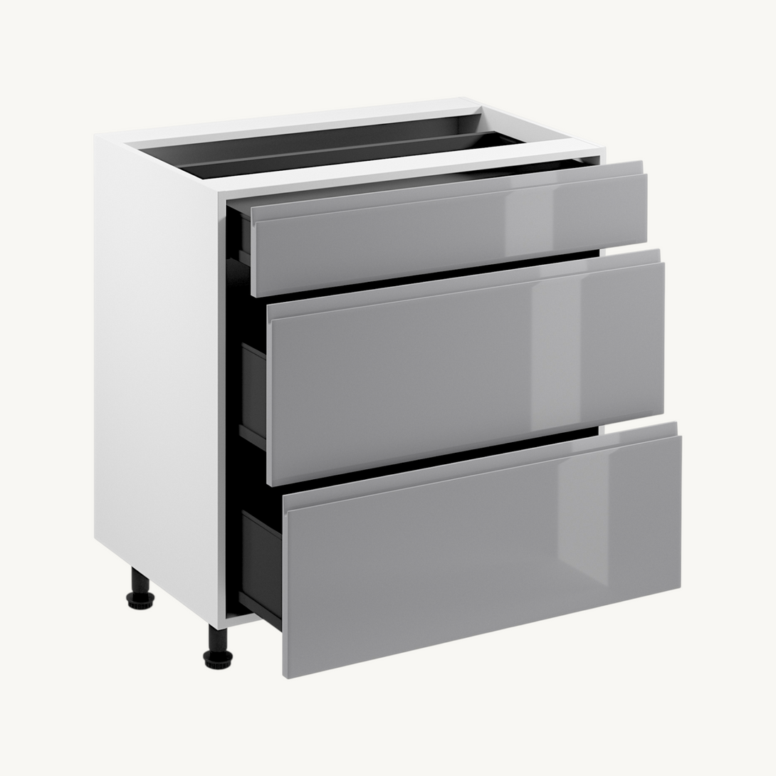 Unterschrank 80 cm Glanzia – D80S3 – Grau / Hochglanz – Moderner Küchenschrank