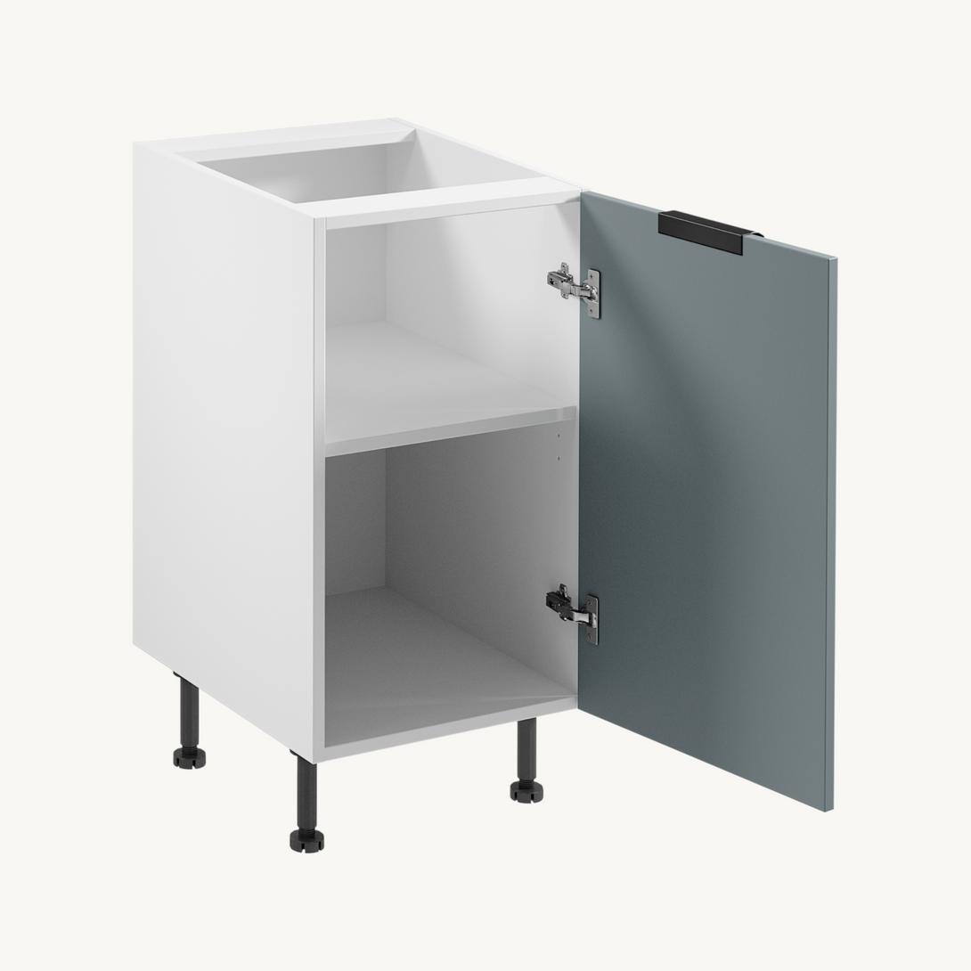 Der Livaro Unterschrank D45 P/L überzeugt durch seine Kombination aus modernem Design, hoher Funktionalität und langlebigen Materialien. Die 18 mm starke laminierte Platte ist widerstandsfähig gegen Kratzer und Feuchtigkeit. Der elegante Metallgriff und die Farbkombination Weiß / Grün sorgen für ein frisches, zeitgemäßes Erscheinungsbild in jeder Küche.