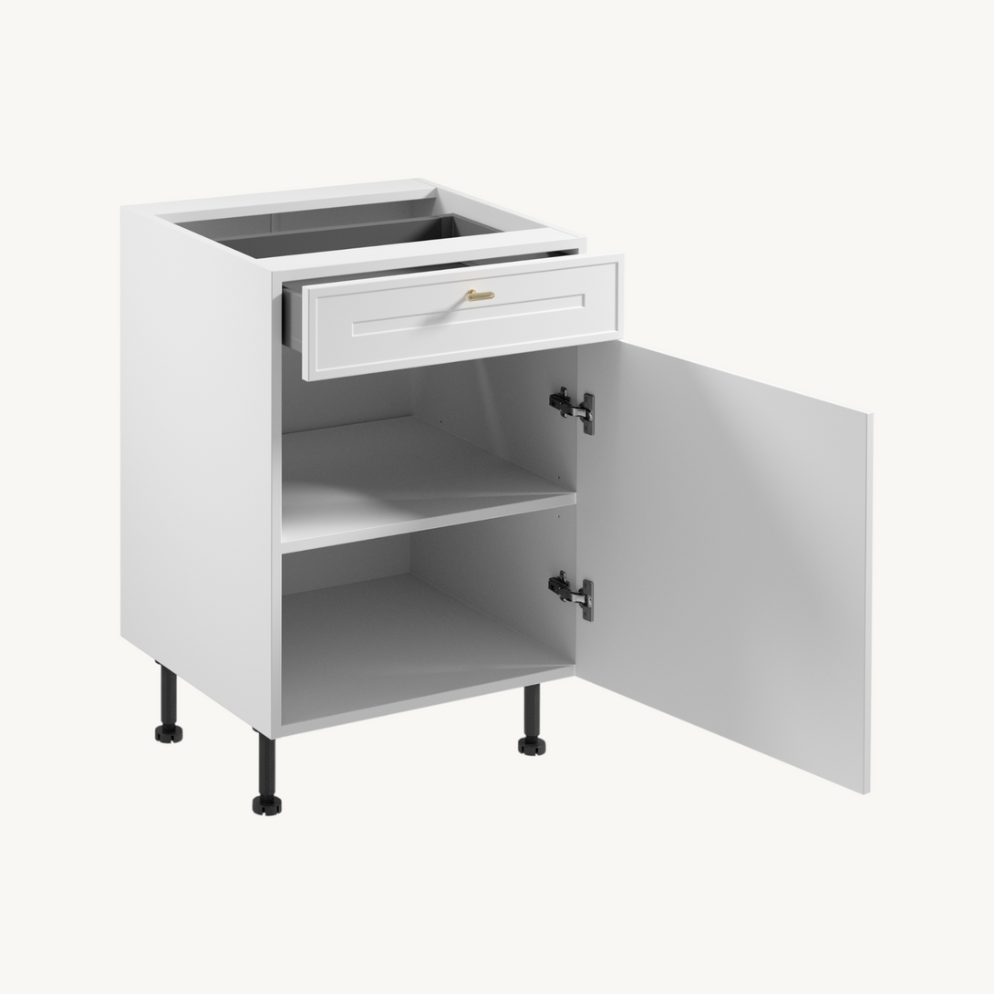Unterschrank D60S1 P/L AX - Livaro Weiß / Weiß Rahmen mit Besteckeinsatz