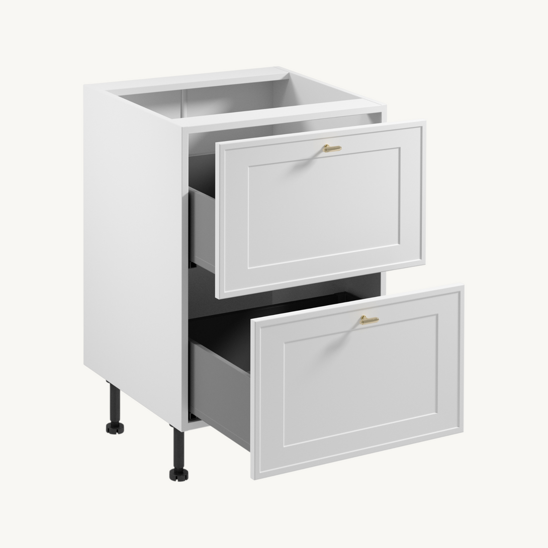 Die Livaro-Kollektion verbindet moderne Funktionalität mit stilvollem Design. Mit seinen zwei geräumigen Schubladen bietet dieser Unterschrank eine perfekte Lösung für die Aufbewahrung von Küchenutensilien. Hochwertige Materialien, leise Mechanik und elegante goldene Akzente sorgen für ein harmonisches Gesamtbild in jeder Küche.