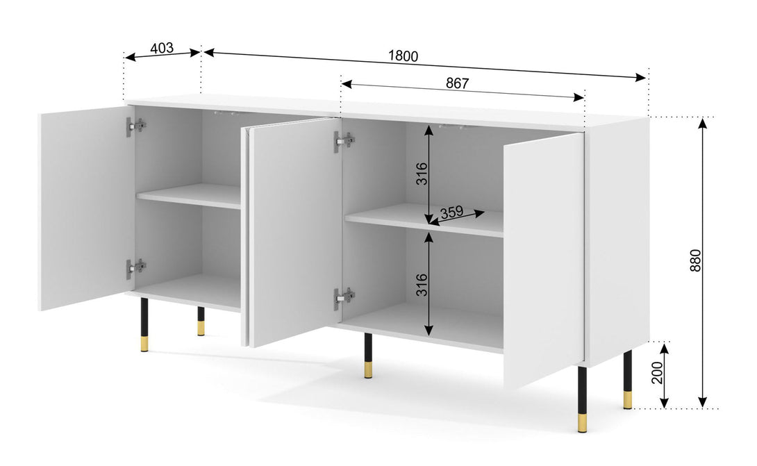Mit vier Türen und mehreren Innenfächern bietet das Sideboard viel Platz für die Aufbewahrung von Wohnaccessoires, Akten oder persönlichen Gegenständen. Das grifflose Design mit PUSH TO OPEN Funktion unterstreicht die minimalistische Ästhetik und erleichtert die tägliche Nutzung in Wohn-, Arbeits- oder Schlafräumen.