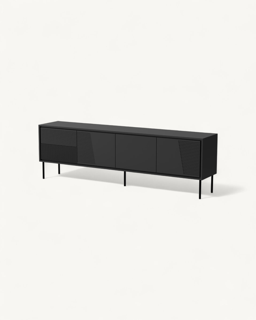 Highlights:• 4 grifflose Türen für Stauraum• Schwarze Metallfüße (20 cm hoch)• Modernes, minimalistisches Design• Robuste MDF-Fronten (18 mm)• Pflegeleichte Oberflächen