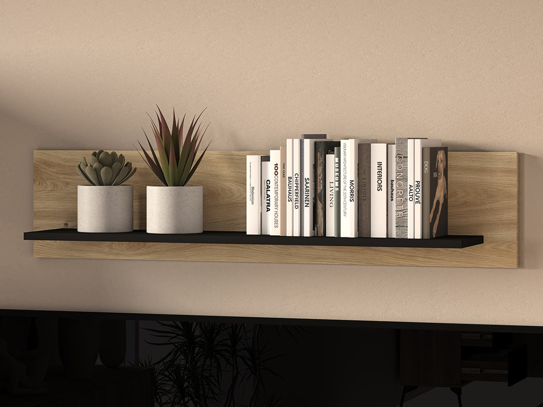 Das AGIS Wandregal ist die perfekte Ergänzung für moderne Wohnräume. Es bietet eine stilvolle Möglichkeit zur Präsentation von Dekorationen, Büchern oder Alltagsgegenständen. Mit seiner robusten Verarbeitung und dem eleganten Design fügt es sich harmonisch in verschiedene Einrichtungsstile ein.