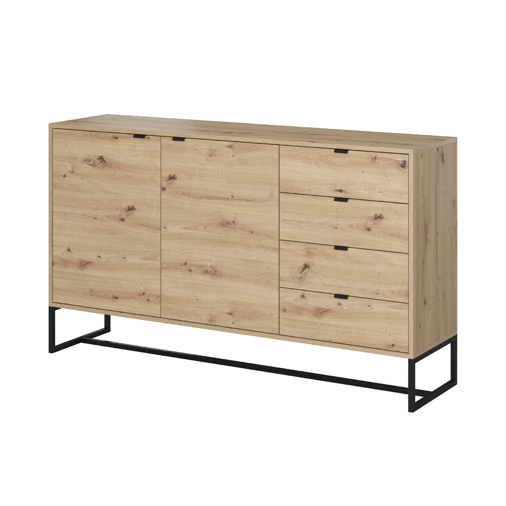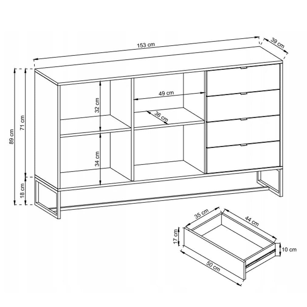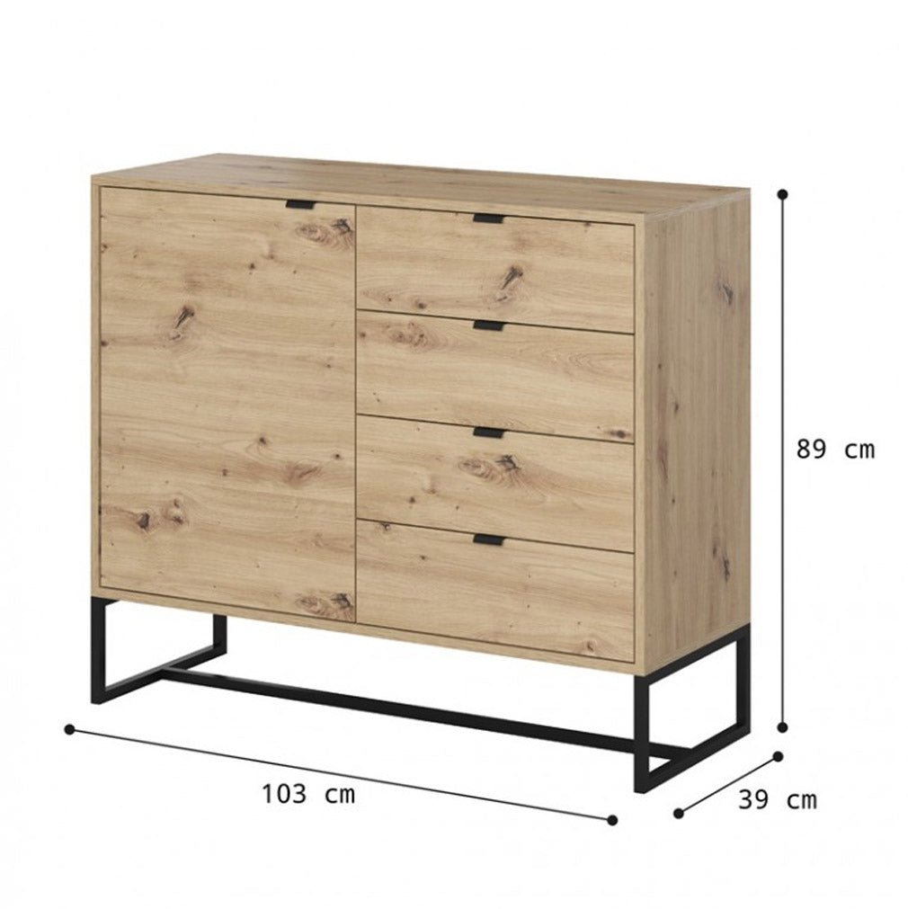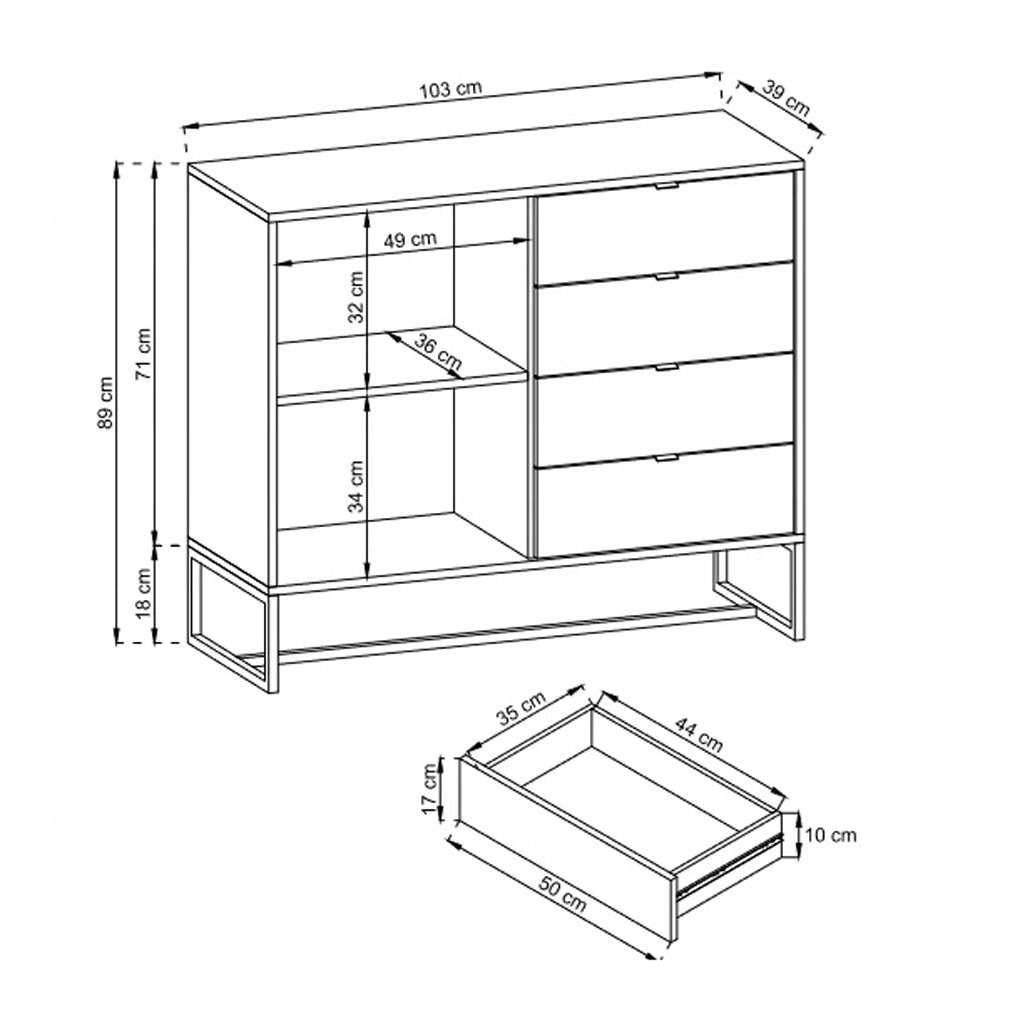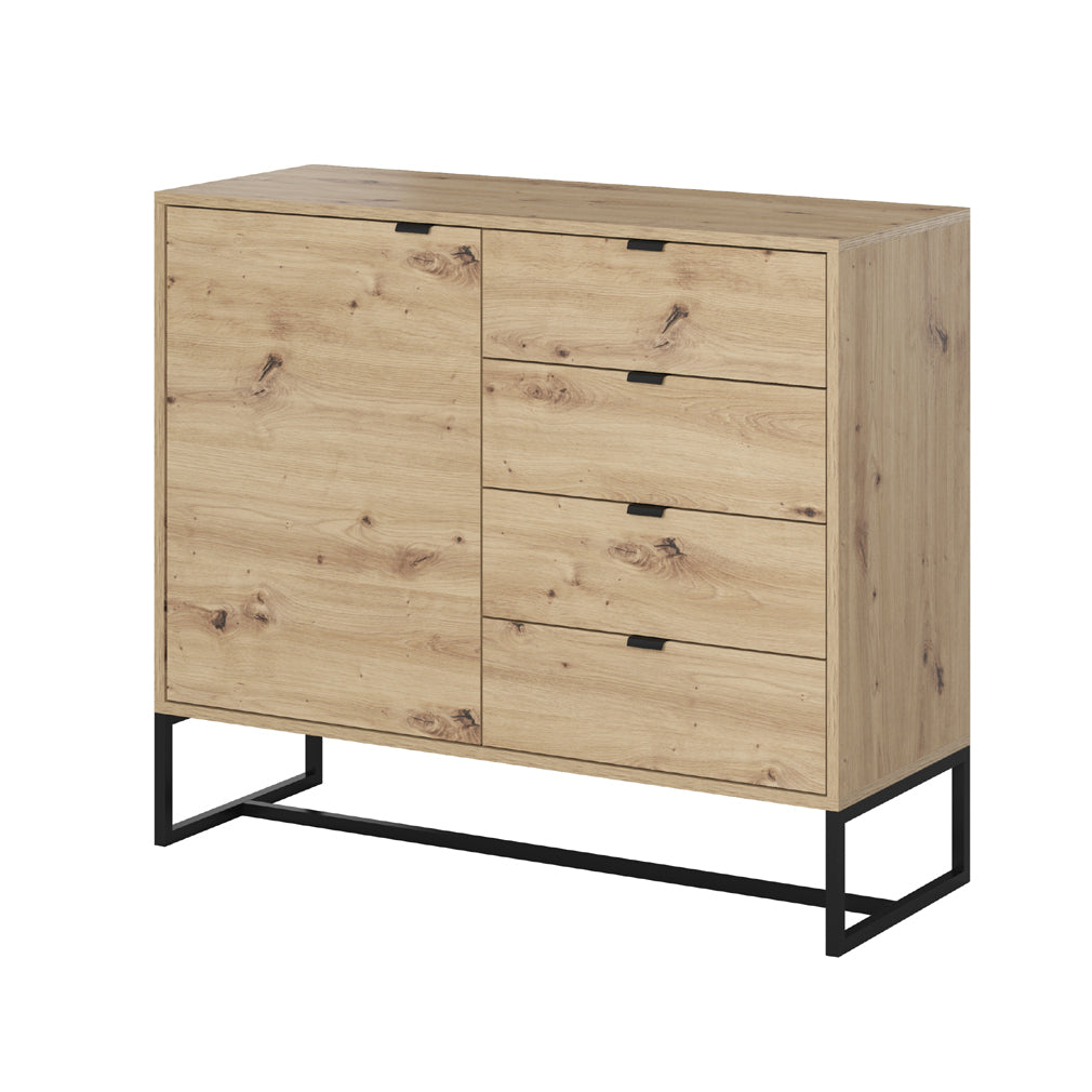 Die AMBER I Kommode vereint modernes Design mit funktionaler Aufbewahrungslösung und passt sich dank der eleganten Holzoptik perfekt in jedes Wohnambiente ein. Die robusten Metallfüße und die stilvollen Griffe aus Metall unterstreichen die hohe Verarbeitungsqualität und sorgen für Stabilität und Langlebigkeit.Die hochwertige Konstruktion aus laminierten Platten mit ABS-Kanten gewährleistet eine lange Lebensdauer und einfache Pflege. Die klar strukturierte Aufteilung der Fächer bietet ausreichend Stauraum für verschiedenste Alltagsgegenstände.