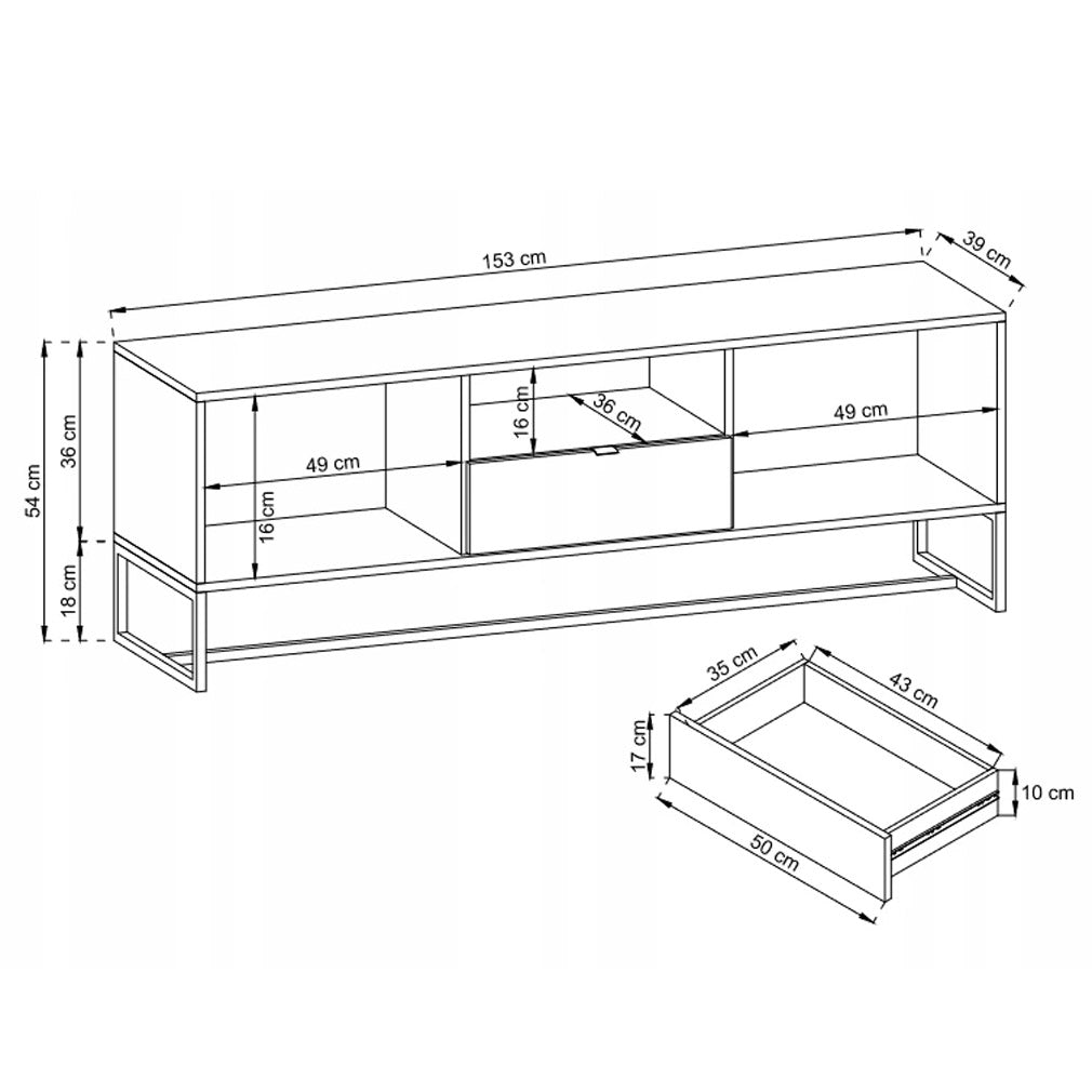 Der AMBER I TV-Schrank überzeugt durch sein elegantes Design und die moderne Holzoptik, die sich perfekt in verschiedene Wohnstile integrieren lässt. Mit seiner strukturierten Front in Schwarz Phanton und dem mattschwarzen Korpus bietet dieser Lowboard eine stilvolle und zugleich praktische Lösung für Ihr Wohnzimmer. Die stabile Konstruktion aus laminierten Platten und MDF sorgt für Langlebigkeit und eine hochwertige Verarbeitung.