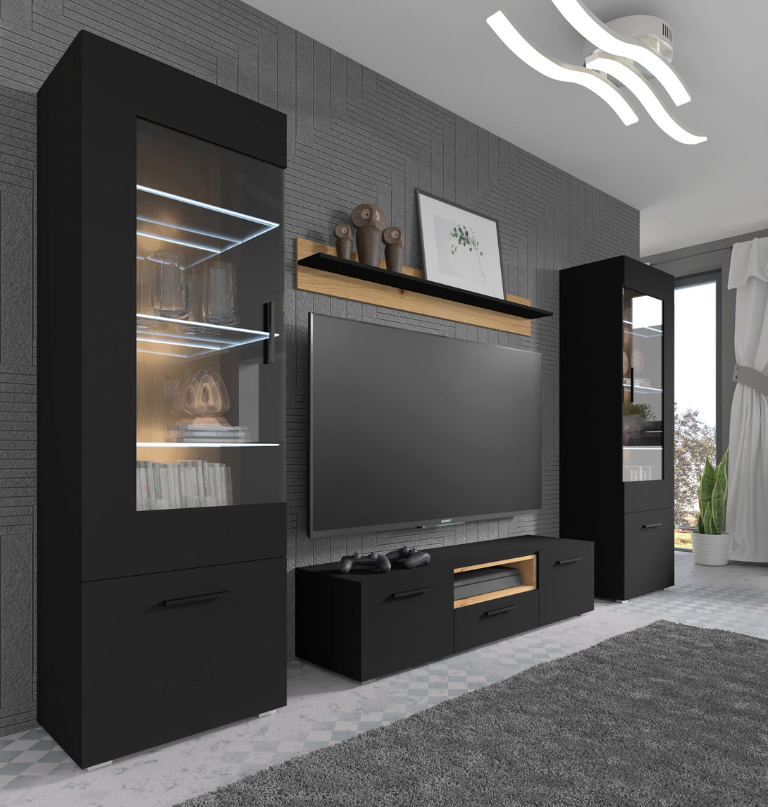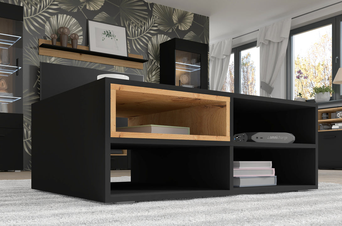 Das ANETTE Wandregal vereint industriellen Loft-Stil mit moderner Funktionalität. Die elegante Kombination aus schwarz matten Oberflächen und dem natürlichen Artisan Eiche-Dekor verleiht jedem Raum einen zeitgemäßen Charakter.