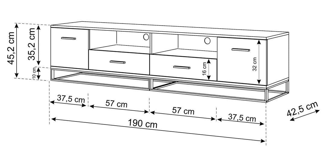 Dank seines minimalistischen Designs lässt sich das Möbelstück vielseitig in verschiedene Wohnräume integrieren. Die hochwertige Verarbeitung mit ABS-Kanten, funktionalen Griffen und stabilen Metallbeinen garantiert Langlebigkeit und Alltagstauglichkeit – ideal für ein stilvolles und funktionales Wohnzimmer.