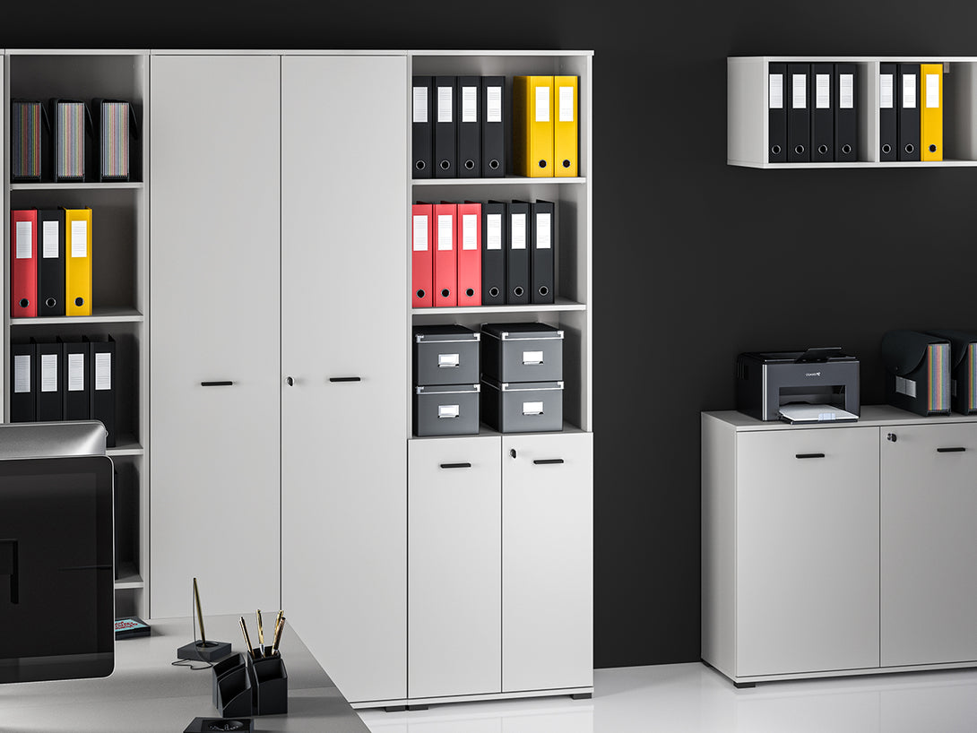 Gefertigt aus hochwertiger, lamellierter Spanplatte und verstärkt mit ABS-Kanten, vereint dieser Schrank Langlebigkeit mit einem klaren, modernen Look. Die integrierte Schließfunktion schützt wichtige Unterlagen zuverlässig und stilvoll.