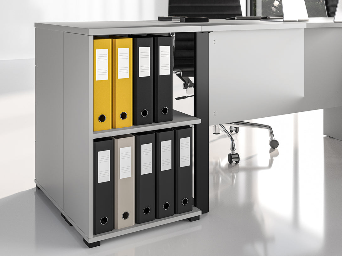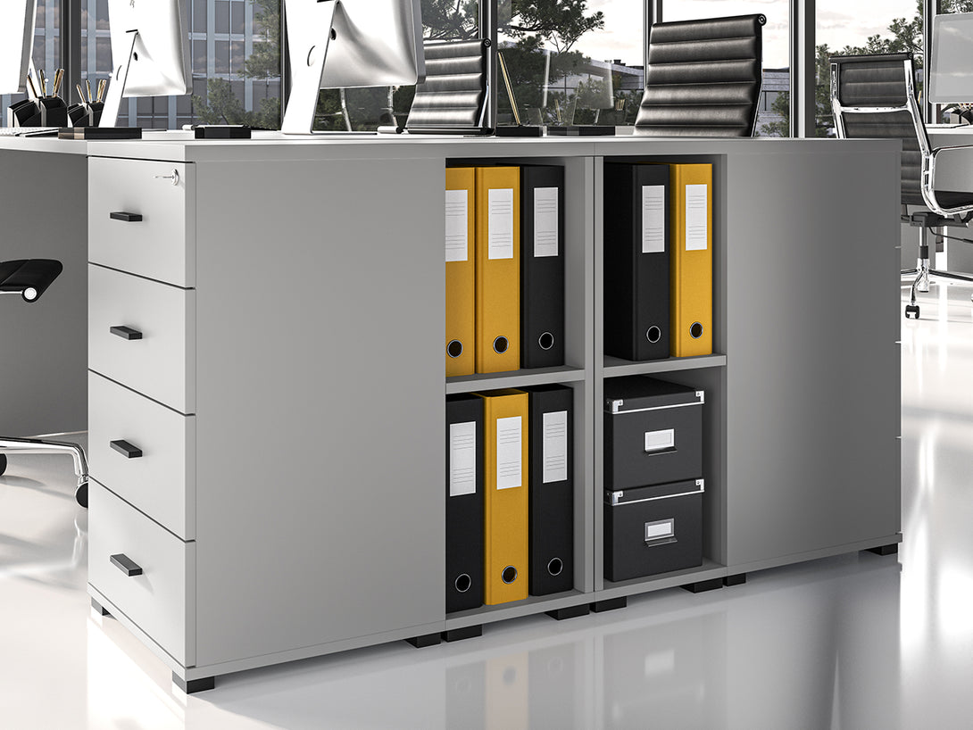 Der BARDO 16 Rollcontainer ist die ideale Ergänzung für moderne Arbeitsumgebungen, in denen Funktionalität auf minimalistisches Design trifft. Mit seiner schlanken Bauweise bietet er praktischen Stauraum auf kleinem Raum und überzeugt durch seine langlebige, hochwertig laminierte Oberfläche. Die silbergraue Front sorgt für eine zeitlose Ästhetik und lässt sich problemlos mit verschiedenen Büromöbeln kombinieren.