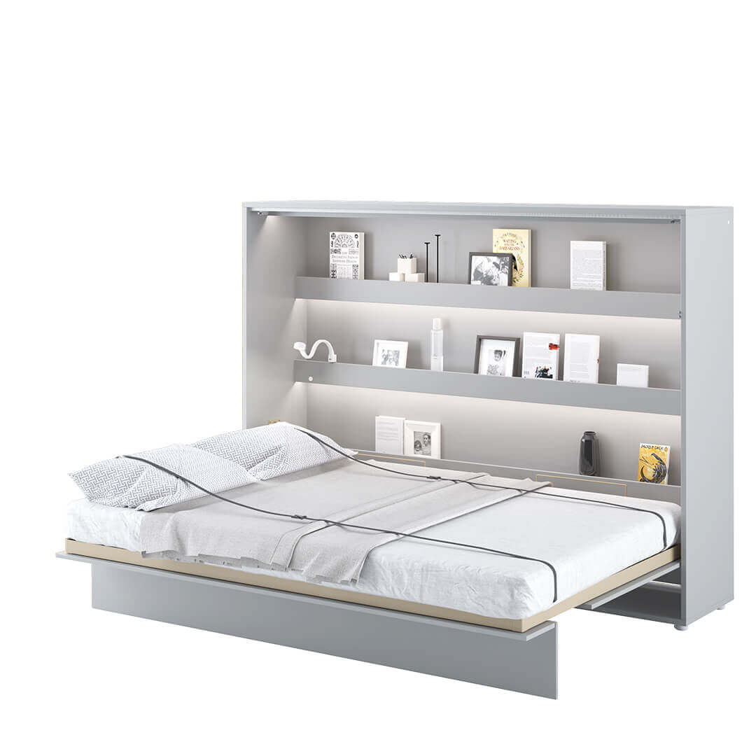 Das Bed Concept horizontale Schrankbett ist eine durchdachte Lösung für alle, die stilvolles Design mit funktionalem Wohnen verbinden möchten. Dank seiner soliden Konstruktion aus laminiertem Holzwerkstoff, MDF-Fronten und einem stabilen Metallrahmen ist dieses Bett nicht nur platzsparend, sondern auch äußerst komfortabel und sicher. Der integrierte Lattenrost aus Holz sowie die pneumatische Hebevorrichtung sorgen für ein leichtes und sicheres Öffnen und Schließen.
