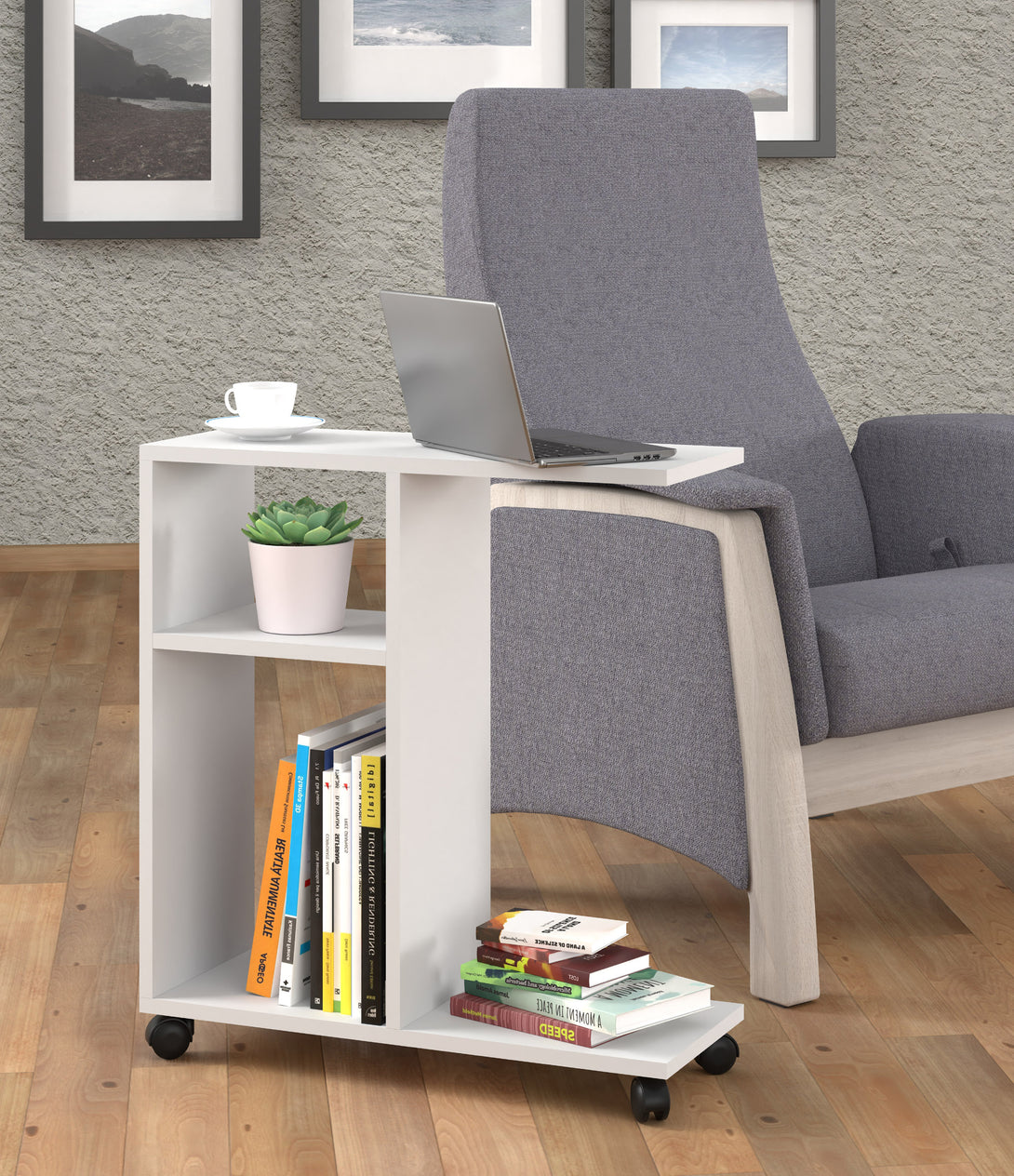 Der TRASCO 1 Beistelltisch auf Rollen überzeugt durch seine Vielseitigkeit und kompakte Form, die ihn zum idealen Möbelstück für moderne Wohnräume macht. Ob als Couchtisch, Nachttisch, Laptopständer oder Organizer – dieses mobile Möbel bietet flexible Einsatzmöglichkeiten in jedem Raum. Zwei offene Ablagefächer bieten Platz für Bücher, elektronische Geräte oder Alltagsgegenstände.