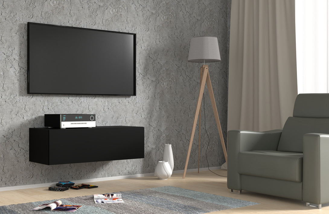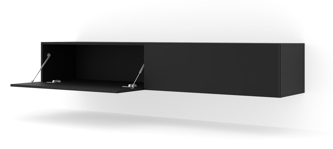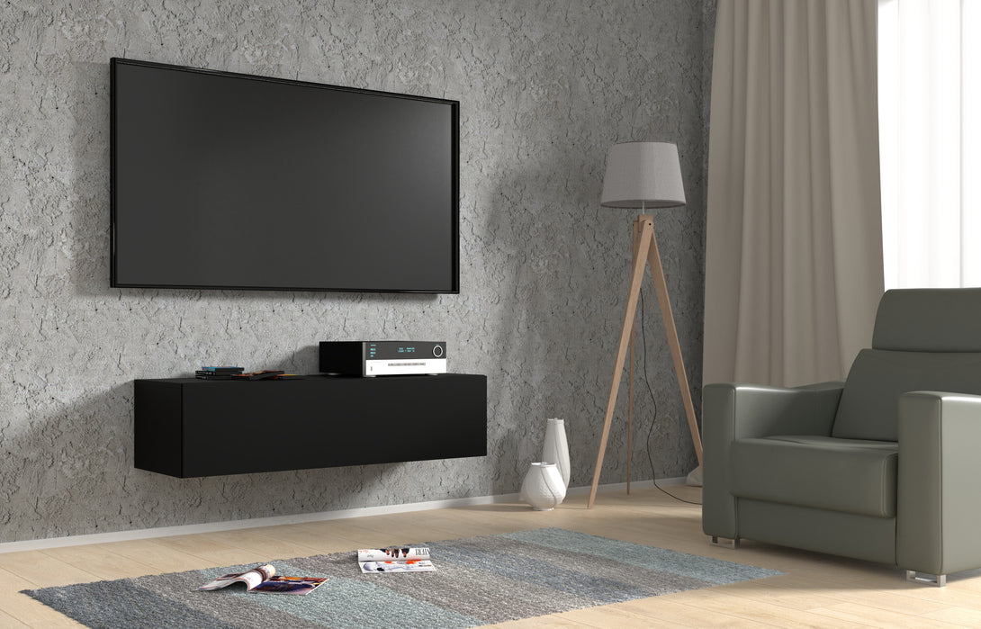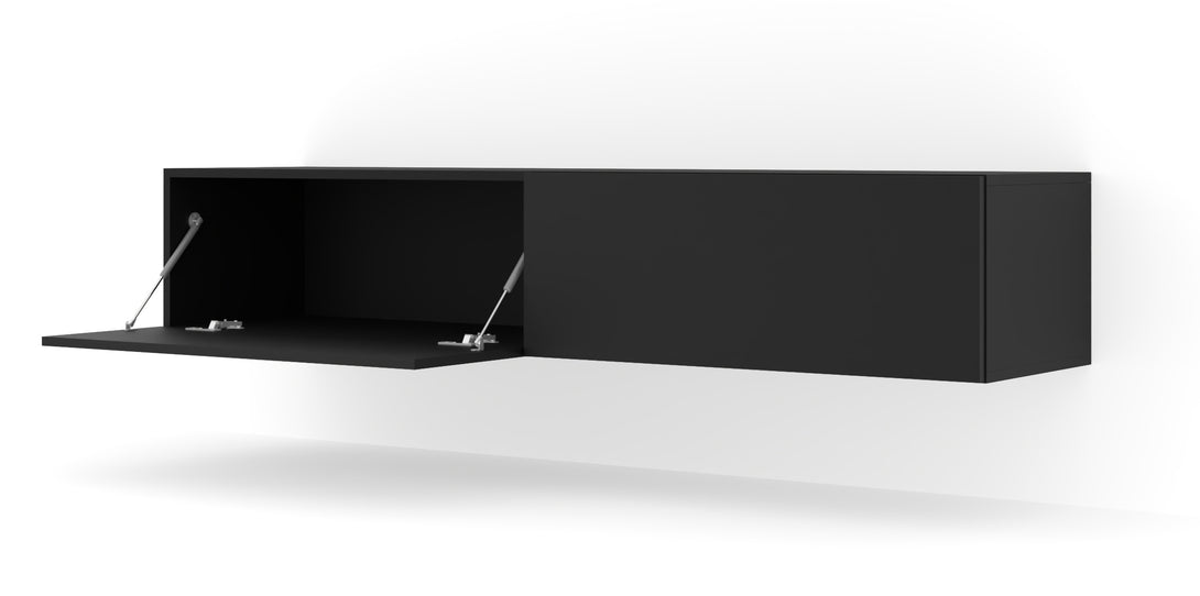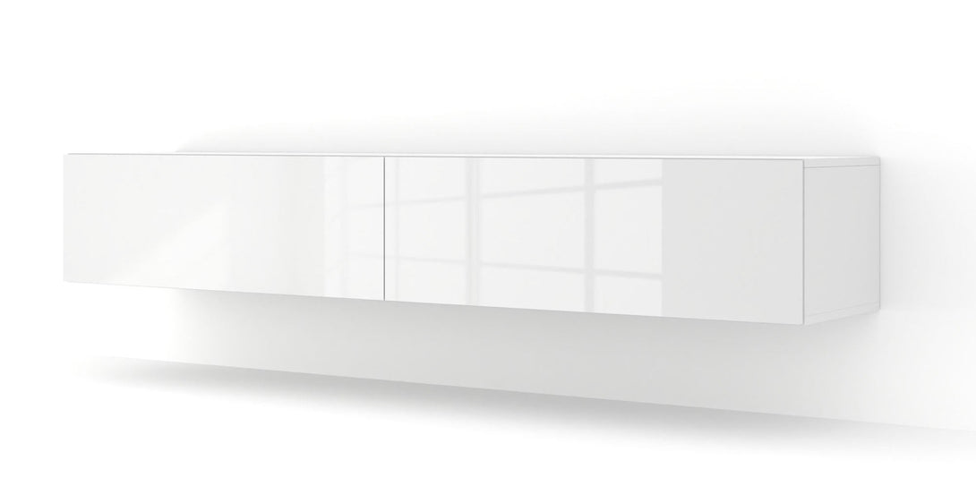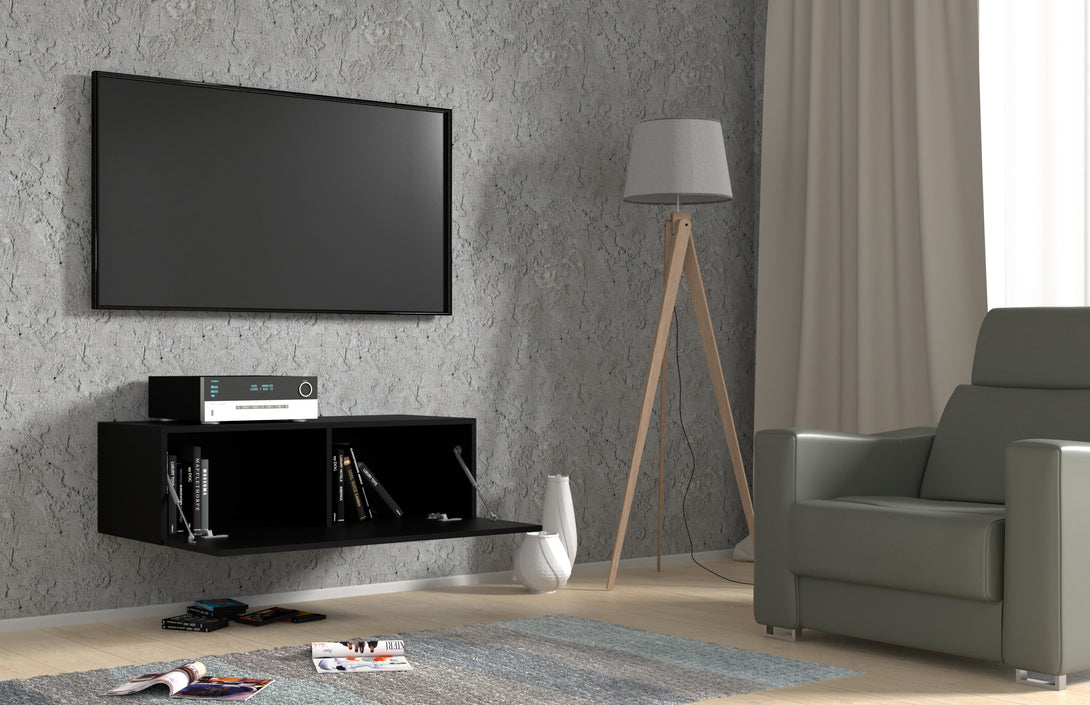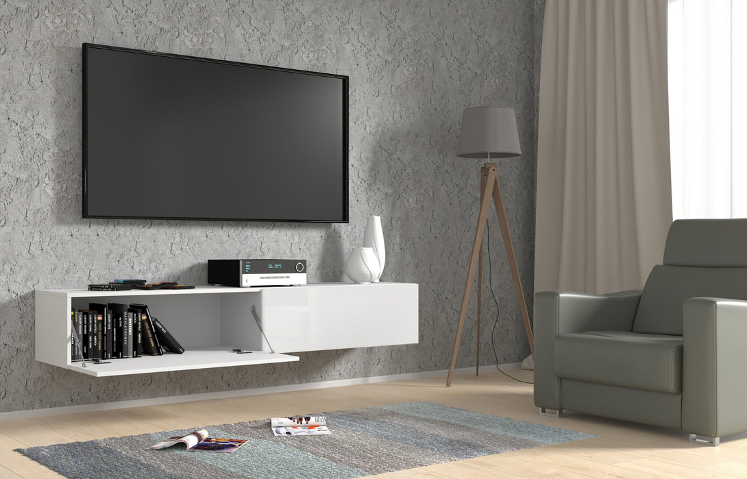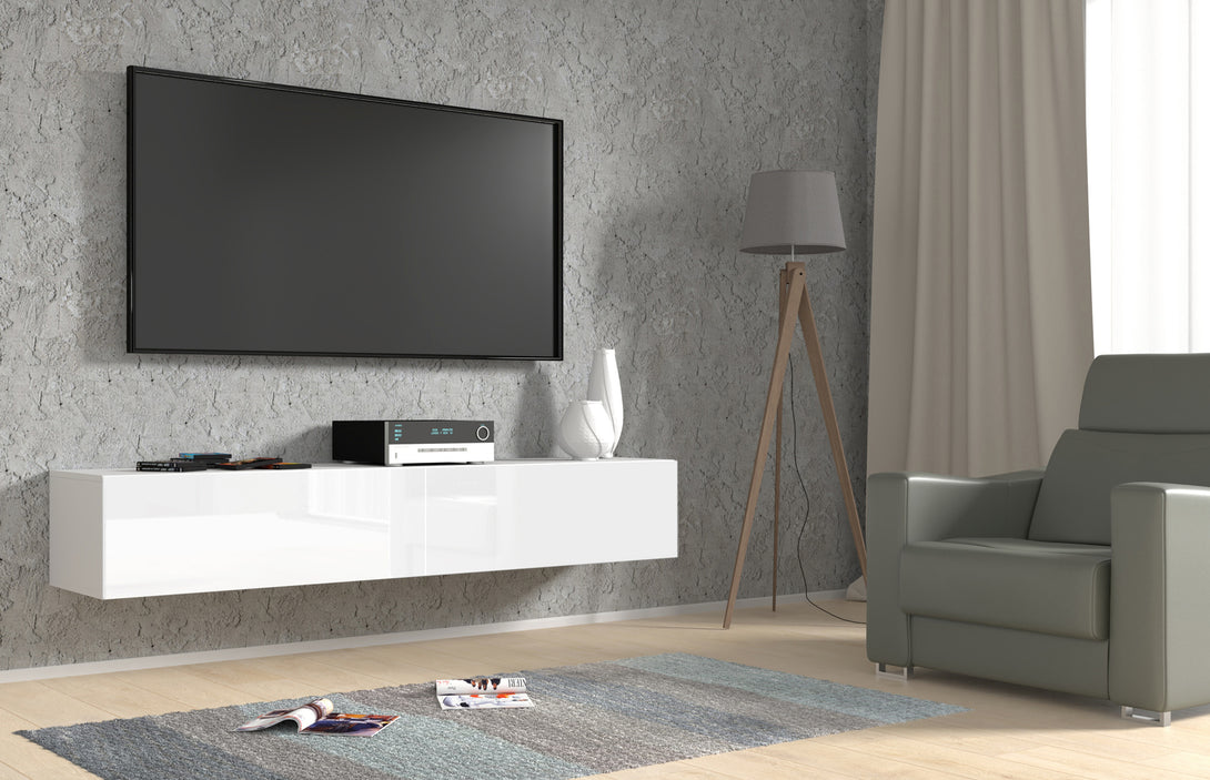 Der BINGO TV-Schrank ist in mehreren Breiten und Farbvarianten erhältlich und bietet somit flexible Lösungen für unterschiedliche Raumgrößen und Einrichtungsstile. Die wandhängende Konstruktion verleiht dem Raum ein modernes, luftiges Ambiente. Die praktische Bodenklappe und das mittig platzierte Fach sorgen für optimale Funktionalität und Stauraum für Elektronikgeräte und Zubehör.