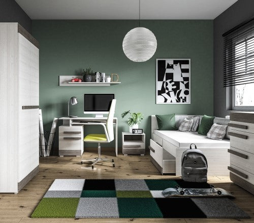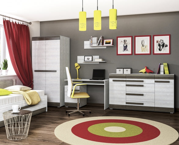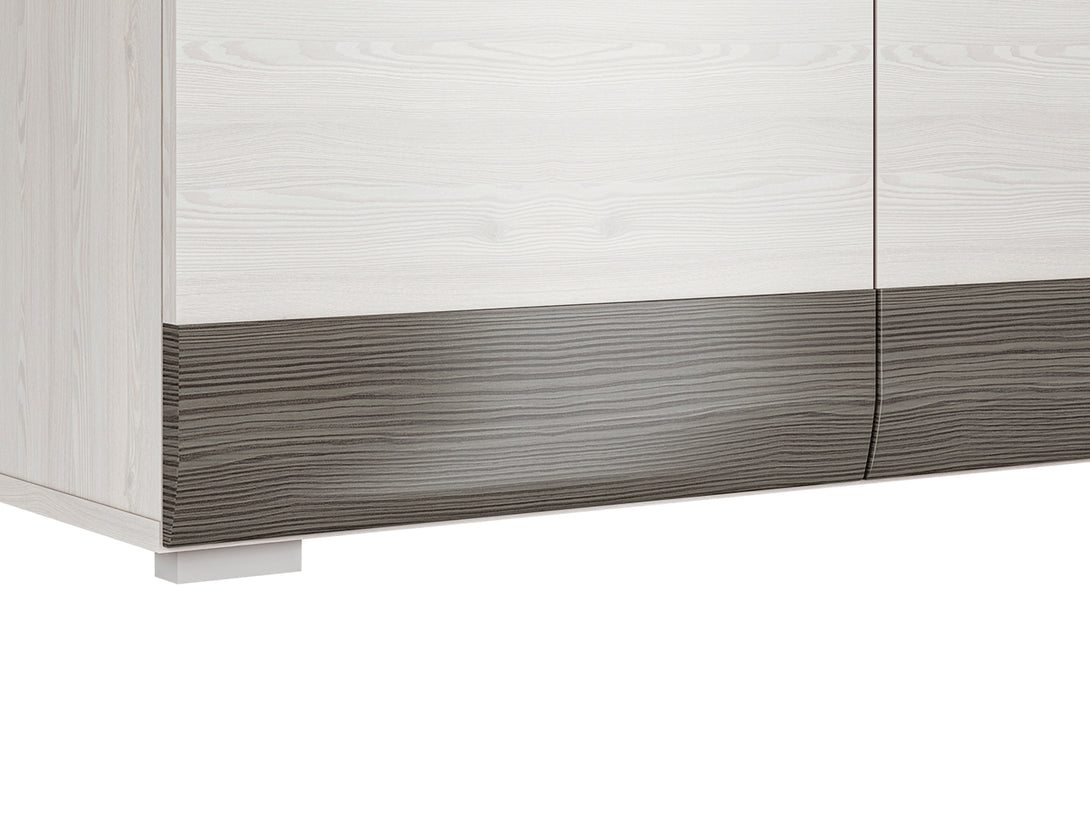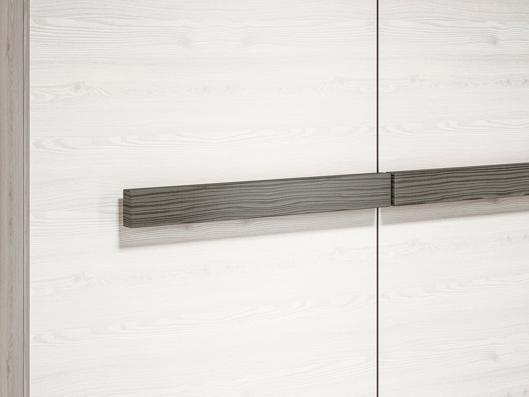 Der BLANCO 01 Kleiderschrank kombiniert moderne Funktionalität mit einem natürlichen Holzdesign und bietet eine stilvolle Lösung für Ihre Aufbewahrungsbedürfnisse. Die Fronten in MDF New Grey und die Korpusgestaltung in Schneeeiche schaffen eine elegante Optik, die sich harmonisch in jede Schlafzimmerumgebung einfügt.