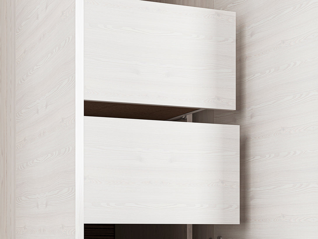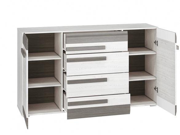 Das 5-teilige BLANCO Schlafzimmer-Set vereint modernes Design mit funktionaler Raumgestaltung und einer stilvollen Holzoptik. Mit seiner Kombination aus geräumigem Kleiderschrank, komfortablem Bett, praktischer Kommode und eleganter Nachttischlösung bietet dieses Ensemble die perfekte Grundlage für ein stilvolles und gleichzeitig funktionales Schlafzimmer. Die hochwertige Verarbeitung mit ABS-Kanten, zertifiziertem Sicherheitsglas (bei Kleiderschrank), sowie langlebiger Laminatplatte sorgt für eine lange Lebensdauer und einfache Pflege. Alle Elemente sind in der harmonischen Farbkombination „Sosna Śnieżna + MDF New Grey“ gehalten und wurden für eine optimale Raumnutzung konzipiert.