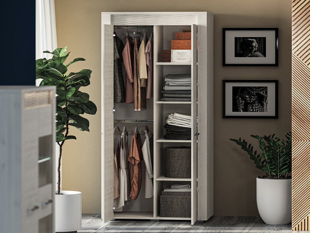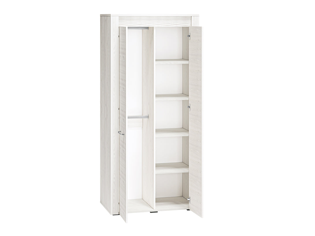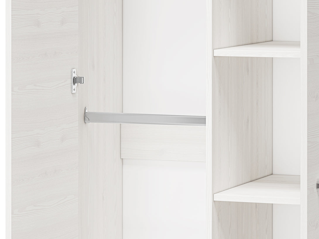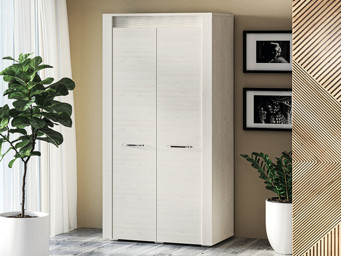 Der CLERMONT 01 Kleiderschrank besticht durch sein modisches und helles Design, ideal für zeitgenössische Wohnräume. Die Dekorfront in „Snow Pine“ mit feiner Maserung und der integrierte, beleuchtete MDF-Einsatz erzeugen einen stilvollen Kontrast und verleihen dem Möbelstück Charakter. Die klassische Korpusform mit chromfarbenen Metallgriffen unterstreicht zeitlose Eleganz und macht ihn sowohl für Wohn- als auch Essbereiche geeignet. Ausgestattet mit langlebiger laminierten Platte und ABS-Kanten, ist der Schrank resistent gegen Kratzer, Feuchtigkeit und hohe Temperaturen – für einen dauerhaften Wert im Alltag.