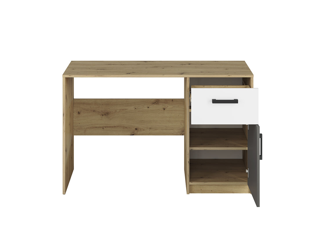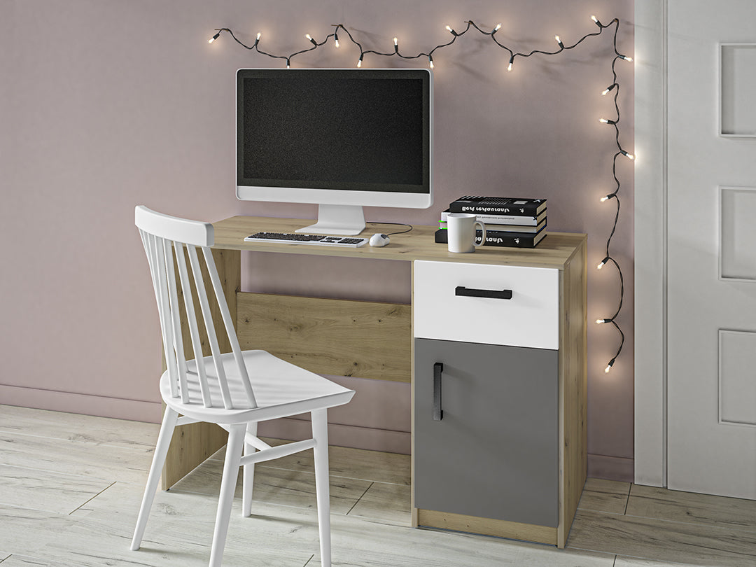Der FINI 08 Schreibtisch vereint modernes Design mit funktionaler Ausstattung für Ihren Arbeitsbereich. Mit seiner breiten Arbeitsfläche und dem klaren, zweifarbigen Stil passt er ideal in Homeoffices oder Jugendzimmer.