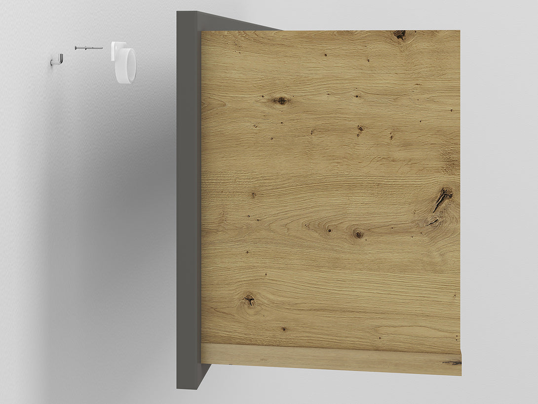 Das FINI 10 Wandregal vereint stilvolle Optik mit praktischer Funktionalität. Die Kombination aus weißem und anthrazitfarbenem Frontdesign sowie einem Korpus in Artisan Eiche verleiht dem Regal einen modernen und dennoch wohnlichen Charakter.