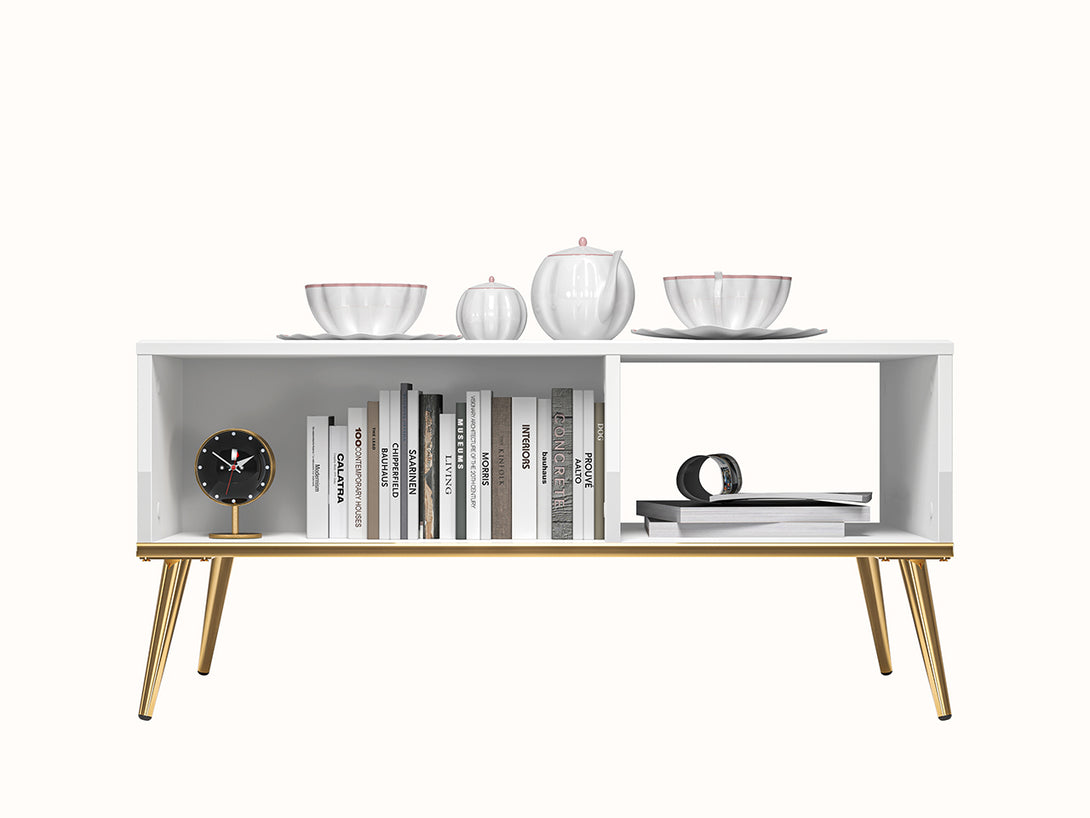 Der GOLDIN 08 Couchtisch ist eine stilvolle und funktionale Ergänzung für moderne Wohnräume. Mit seiner eleganten Hochglanzfront bringt er zeitlose Eleganz in jedes Interieur und lässt sich problemlos mit verschiedenen Möbelstilen kombinieren. Die präzise verarbeiteten ABS-Kanten und die robuste Konstruktion aus MDF und laminierten Spanplatten garantieren Langlebigkeit und Stabilität.