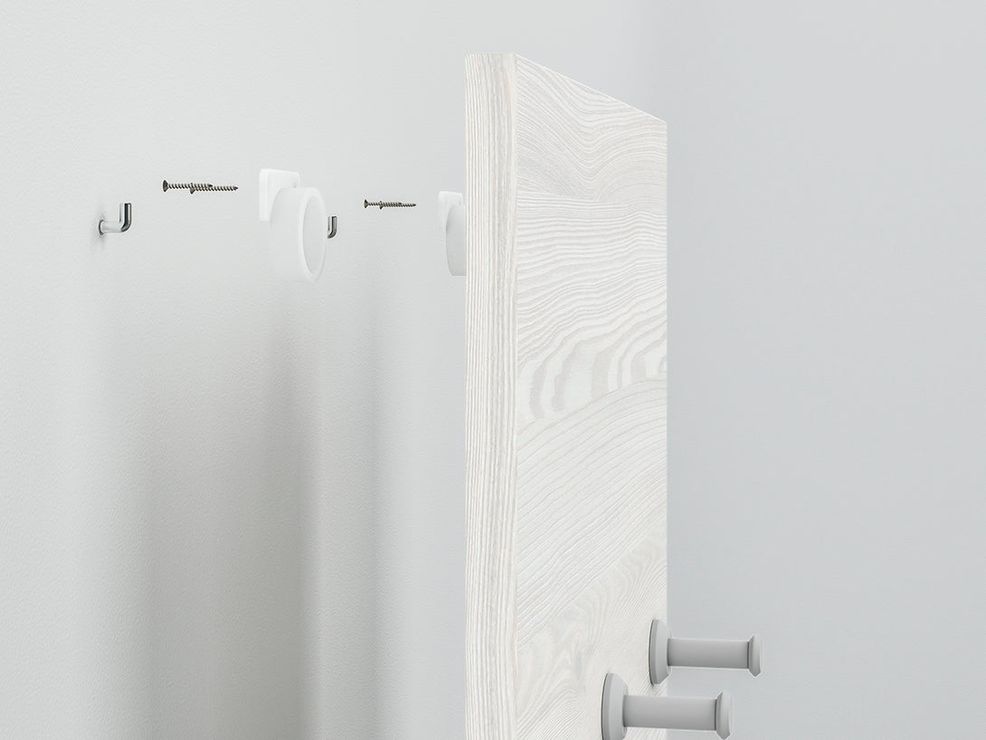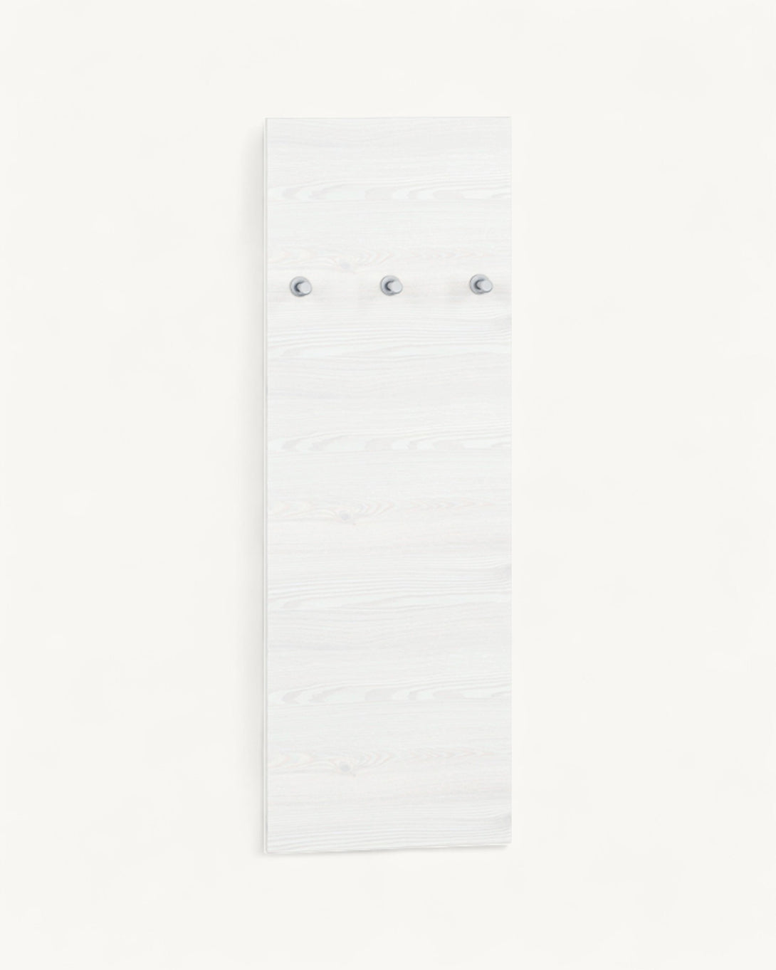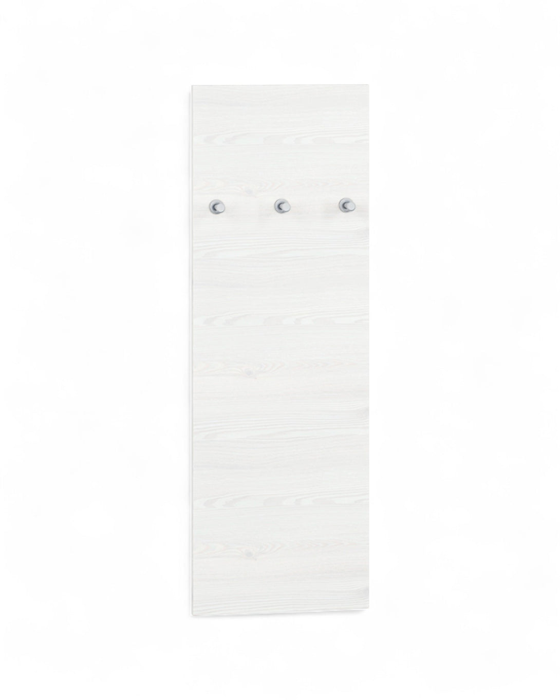 Der HYGA 08 Wandhaken kombiniert schlichte Eleganz mit praktischer Funktionalität. Mit einer Breite von 34 cm bietet er eine platzsparende Lösung zur Aufbewahrung von Jacken und Accessoires im Eingangsbereich oder Flur. Die hochwertige laminierte Spanplatte in Schneekieferoptik mit ABS-Kanten sorgt für ein langlebiges und stilvolles Design.