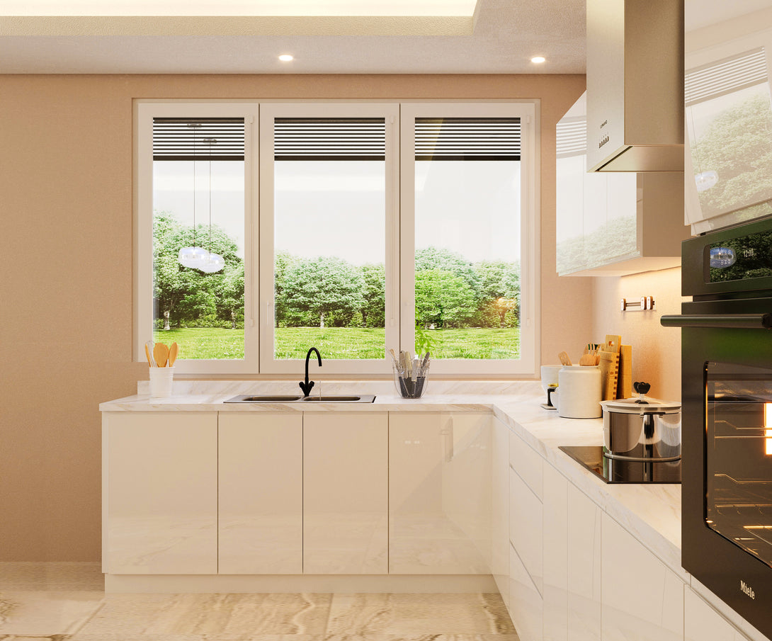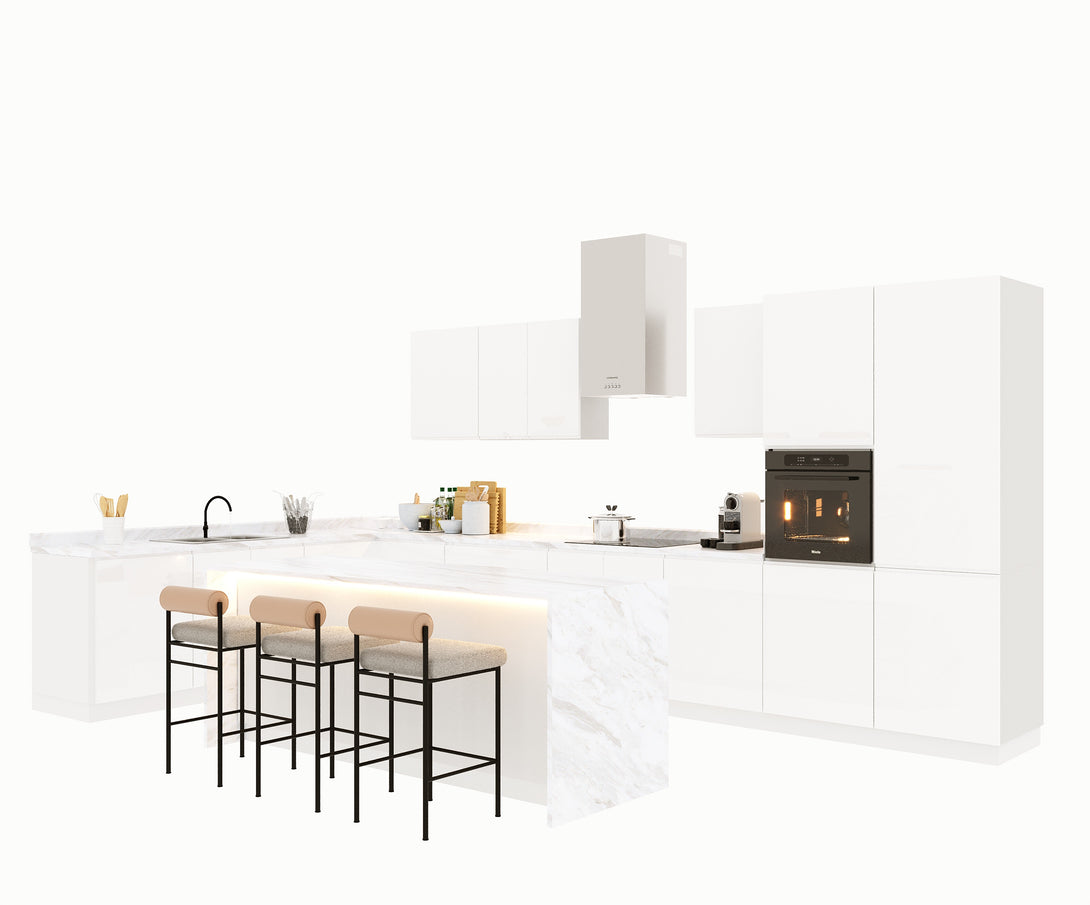 Küchenmöbel-Set Glanzia Inselküche 420x220 cm – Weiß
