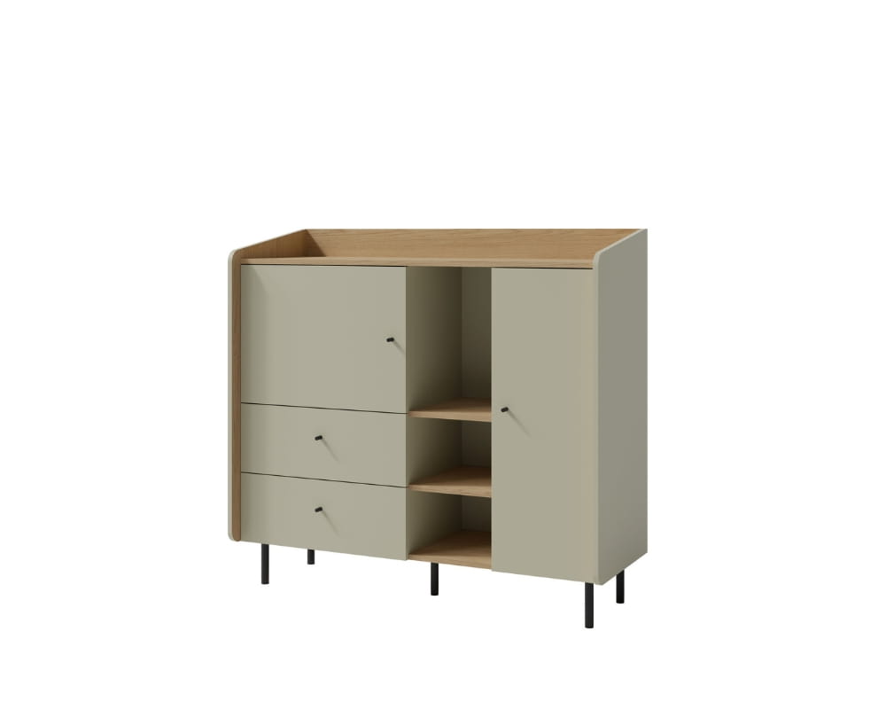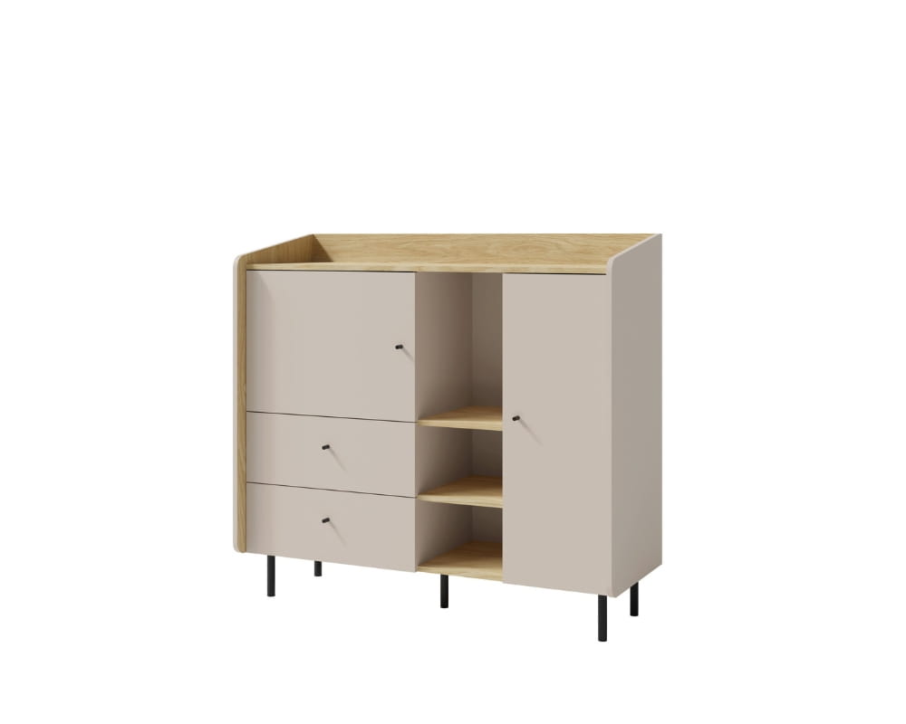 Die Kommode ALESSIO System 8 ist ein funktionales Stauraummöbel für Kinder- und Jugendzimmer und passt sich dank ihres modernen, klaren Designs verschiedenen Altersstufen an. Sie bietet reichlich Platz für Kleidung, Schulmaterialien oder persönliche Dinge und hält das Zimmer ordentlich und übersichtlich. Die laminierte Oberfläche ist widerstandsfähig gegen alltägliche Beanspruchung, während die ABS-Kanten zusätzlichen Schutz bieten. Durch die modulare Systemstruktur lässt sie sich problemlos mit weiteren Elementen des ALESSIO Programms kombinieren. Ein vielseitiges Möbelstück, das mit dem Kind wächst und lange stilvoll bleibt.