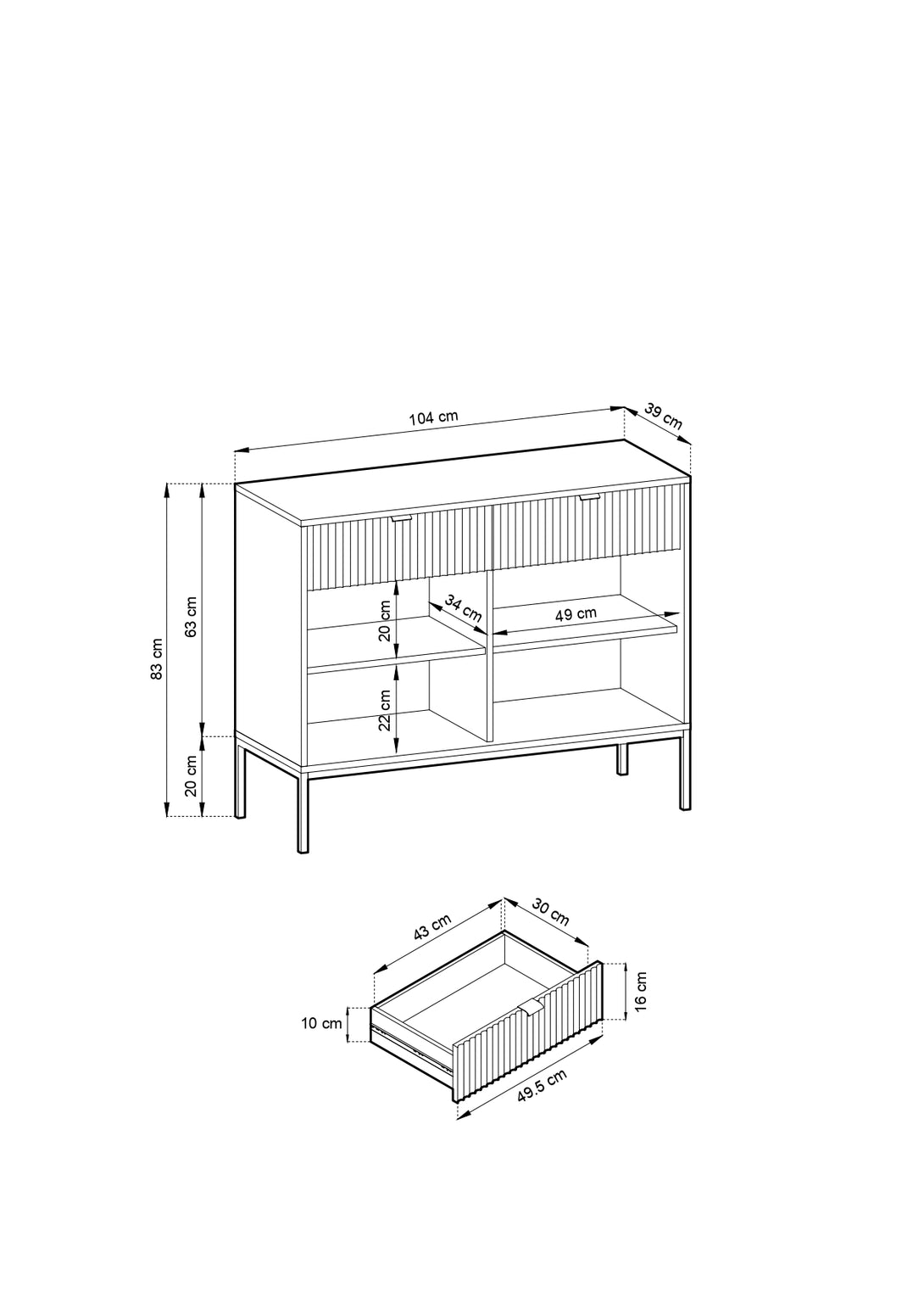 Die Kommode KSZ104 der NOVA Serie in Kaschmir vereint dezente Farbgebung mit einer klar ausgeprägten Rillenstruktur, die dem Möbelstück eine moderne und zugleich ruhige Ästhetik verleiht. Die oberen Klappen eignen sich ideal für Alltagsgegenstände, die schnell erreichbar sein sollen, während die unteren Türen mit mehreren Ablagefächern großzügigen Stauraum für Geschirr, Textilien oder dekorative Elemente bieten. Die kaschmirfarbene Oberfläche schafft eine warme, harmonische Raumwirkung und lässt sich hervorragend in minimalistische und skandinavische Wohnstile integrieren. Das schwarze Metallgestell bietet sicheren Stand und unterstreicht die leichte, elegante Optik der Kommode. KSZ104 ist ein vielseitiges Aufbewahrungsmöbel, das Wohn-, Ess- oder Eingangsbereiche stilvoll ergänzt.