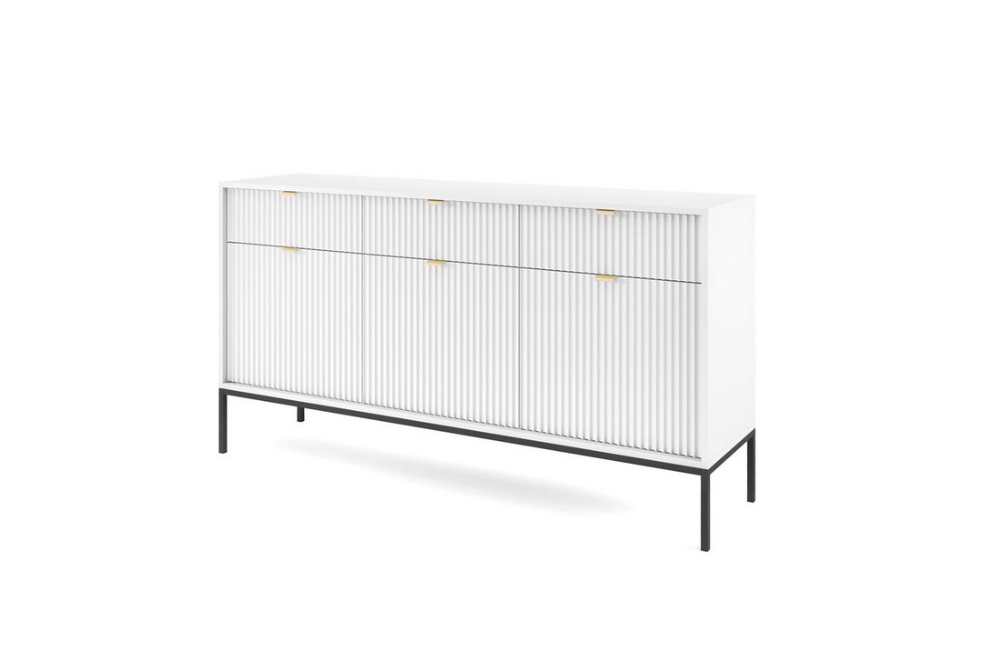 Kommode – Sideboard – KSZ154 – NOVA – Weiß – Elegante Stauraumlösung im modernen Rillen-Design