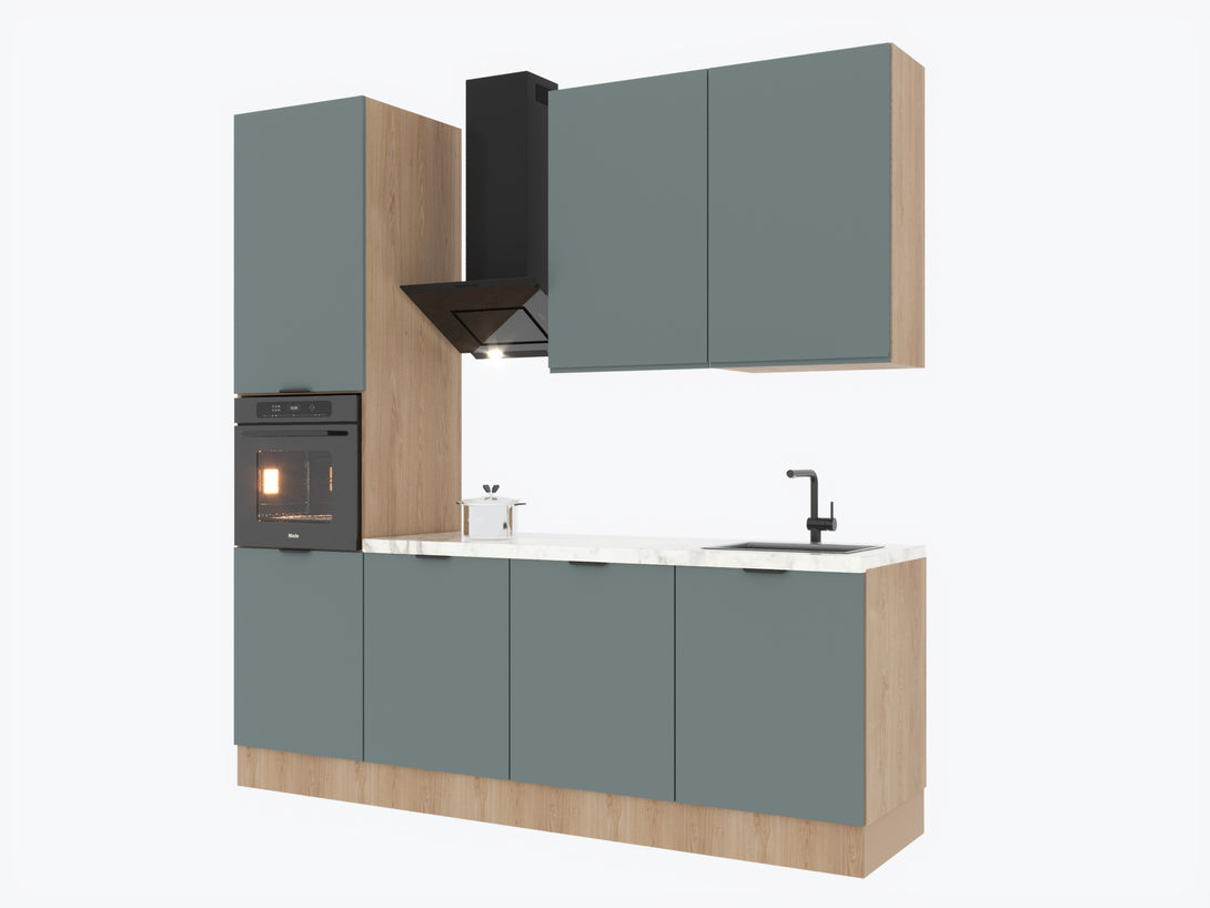 Küchenzeile 240 cm Livaro – KU-S22 – Grün / Sonoma Eiche – Ohne Arbeitsplatte & Elektrogeräte