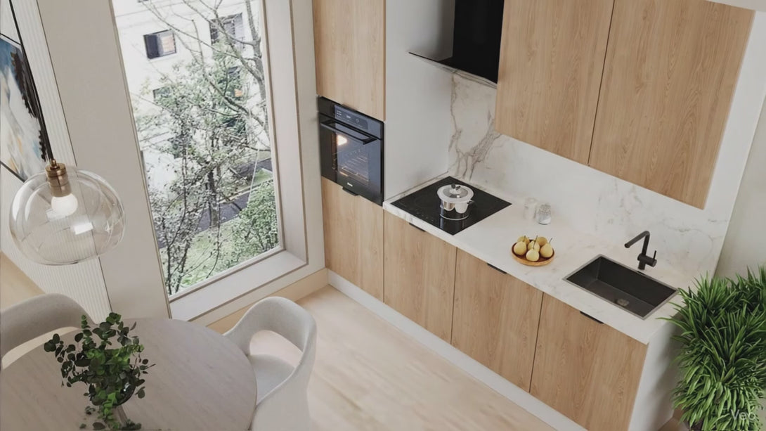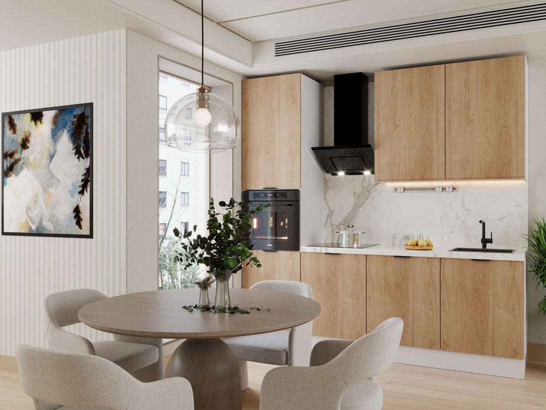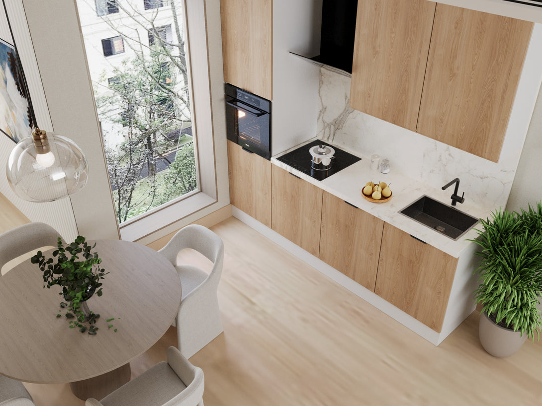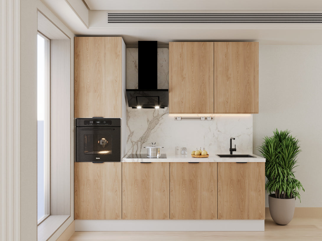 Kompakte Küchenzeile mit optimalem Stauraum.