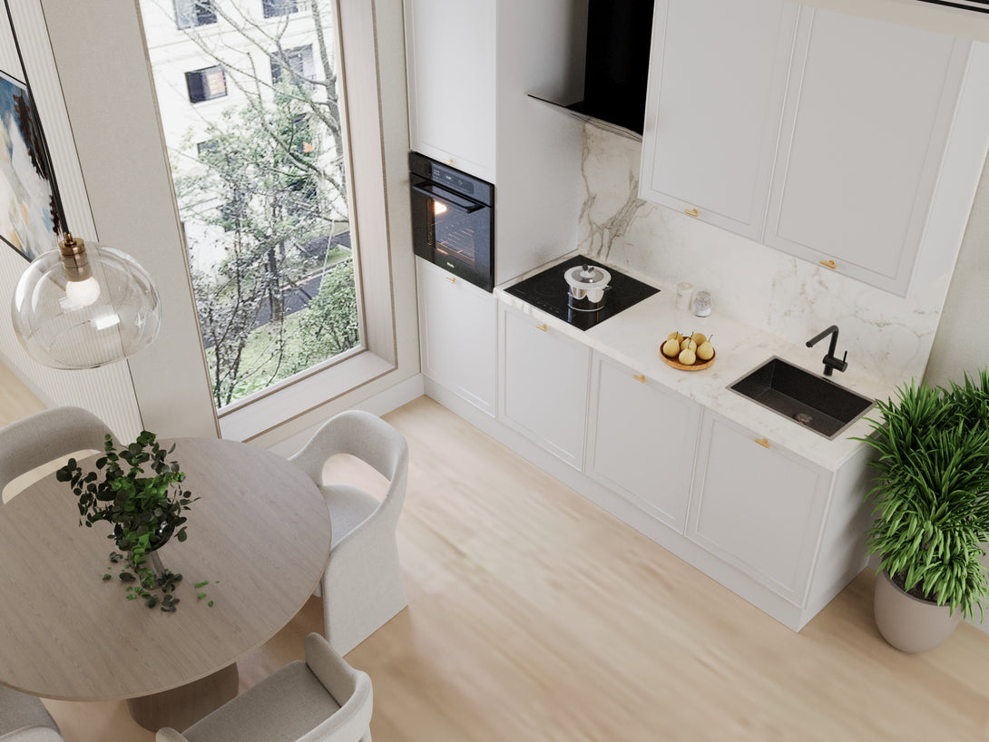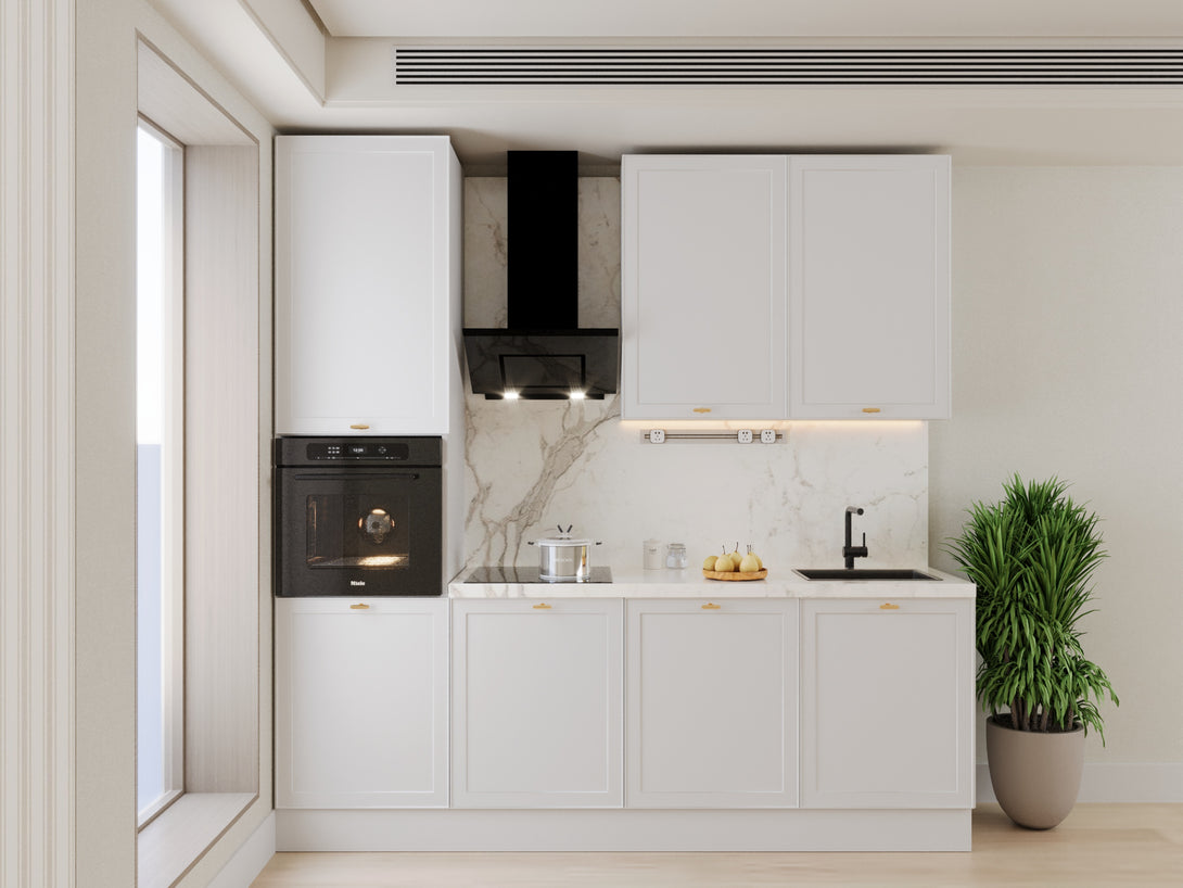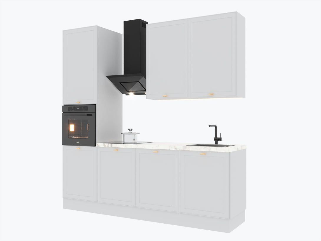 Die Livaro Küchenzeile KU-S32 vereint zeitlose Eleganz mit moderner Funktionalität. Die weißen Fronten mit feinem Rahmendesign verleihen der Küche einen klassischen und zugleich luxuriösen Look. Die Aluminium Griffleiste Gold sorgt für einen stilvollen Akzent und hebt das helle, edle Erscheinungsbild zusätzlich hervor. Ideal für alle, die Wert auf Ästhetik und Qualität legen.