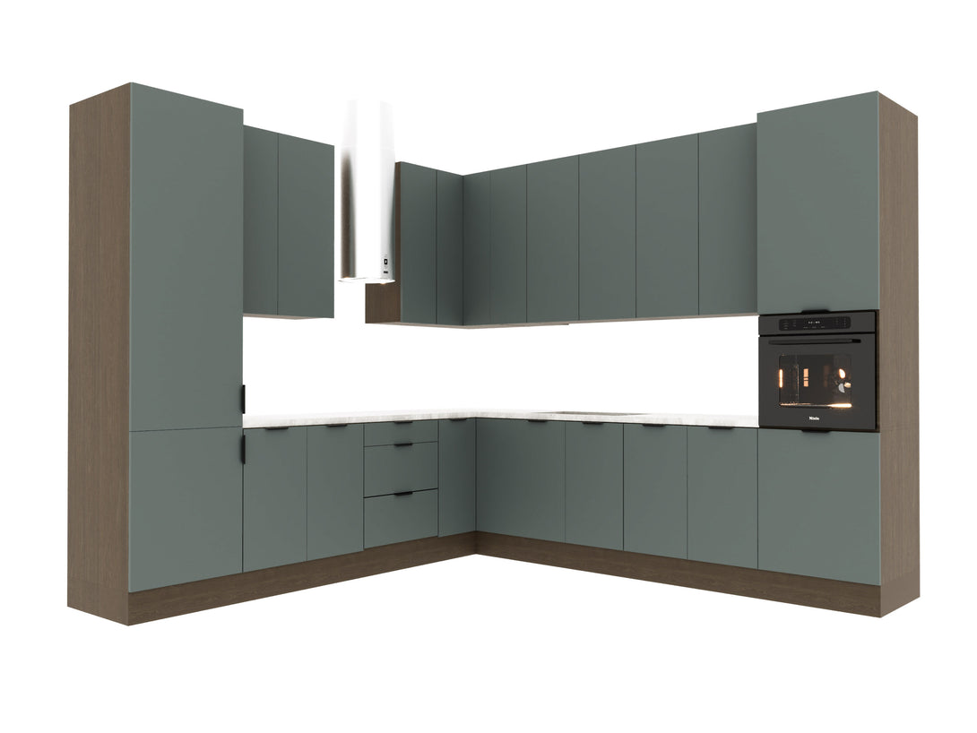 Küchenmöbel-Set Livaro 310 x 290 cm – Grün Matt / Dunkle Eiche Korpus