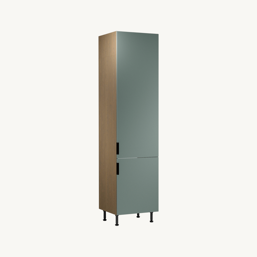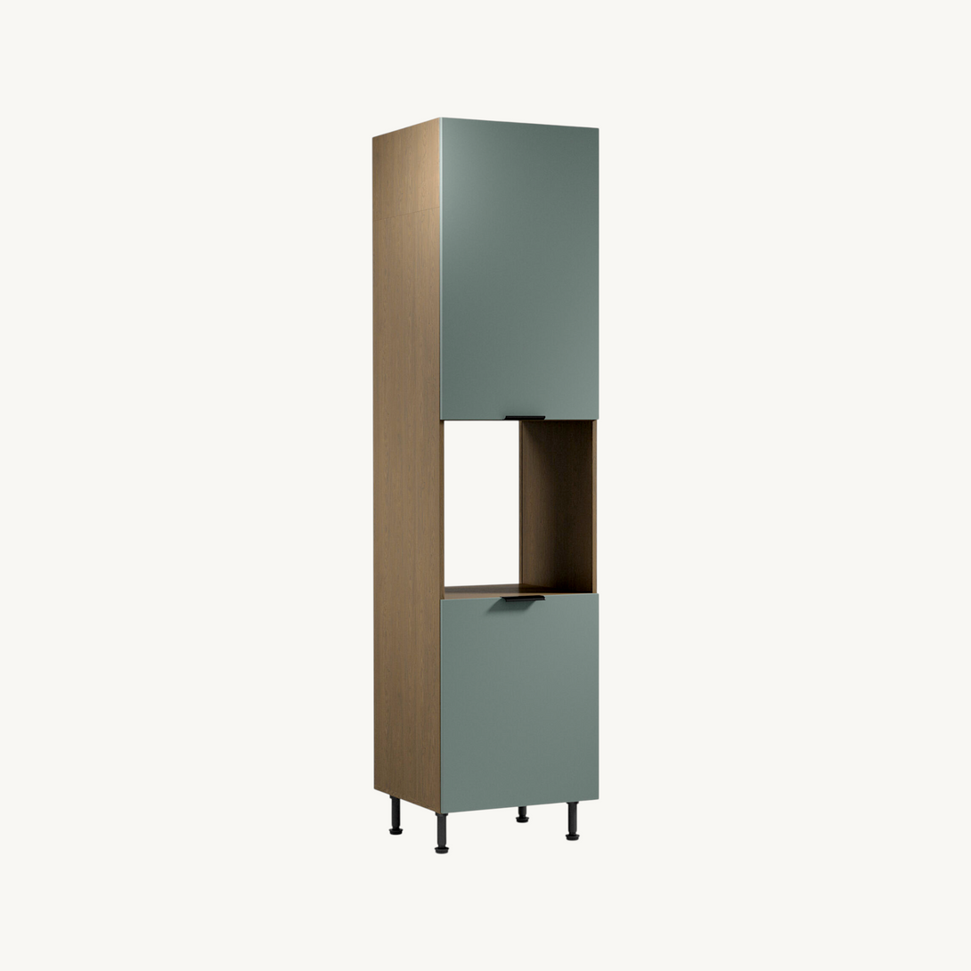 Mattes Grün kombiniert mit edler dunkler Holzoptik.