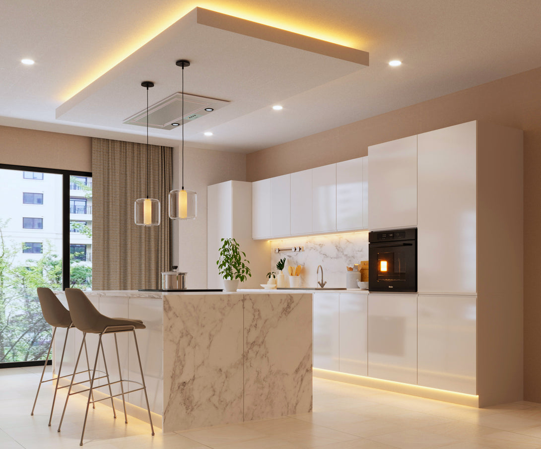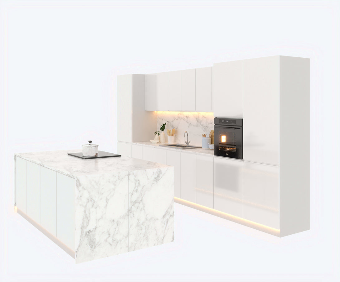 Die Glanzia Inselküche KU-S13 vereint Funktionalität und zeitloses Design. Mit einer geräumigen Kücheninsel, modernen Hochglanz-Fronten und optimaler Stauraumaufteilung bringt sie Eleganz und Komfort in Ihr Zuhause. Die modulare Struktur passt perfekt in moderne Wohnräume.