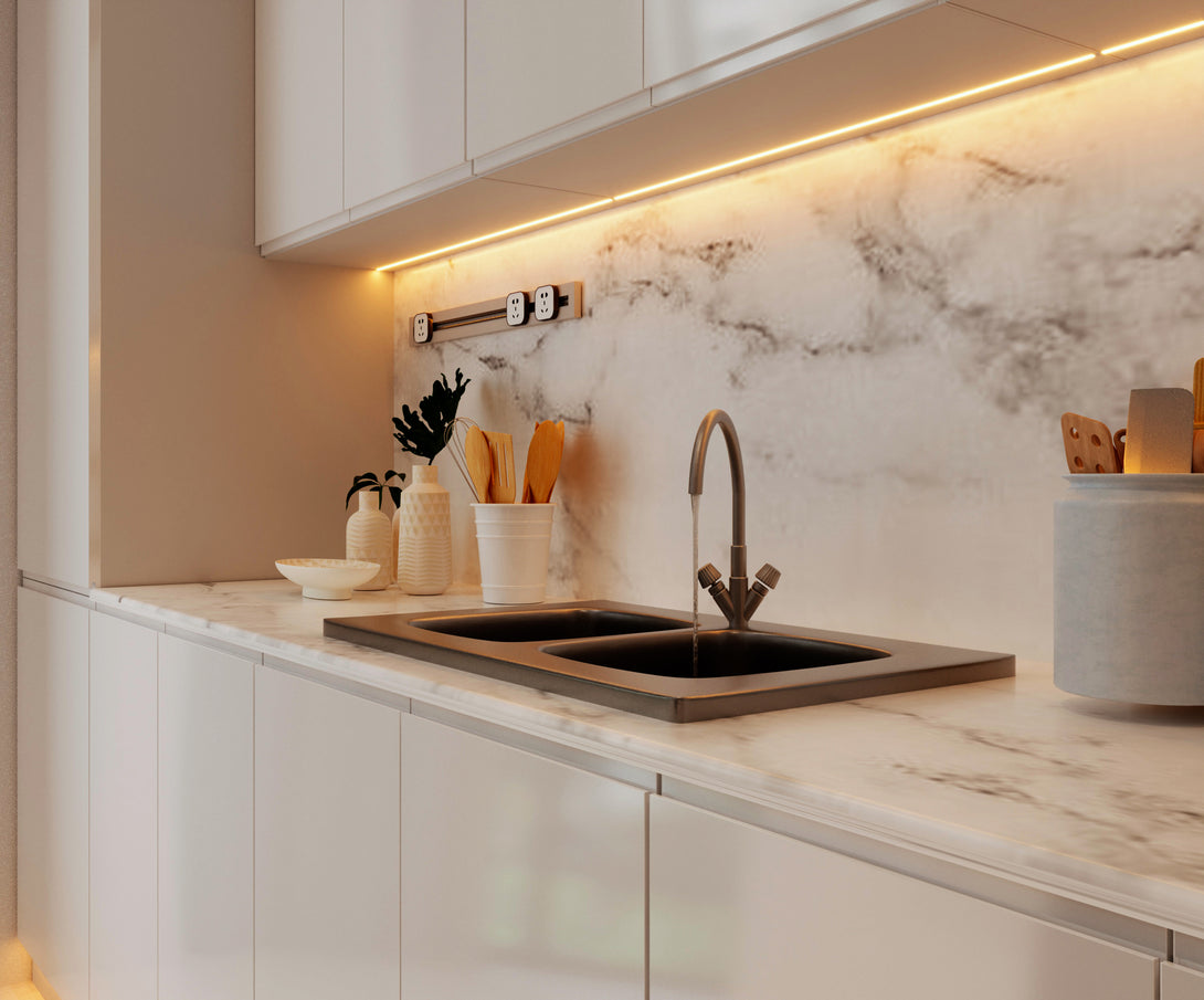 Elegante Kücheninsel mit großzügiger Arbeitsfläche.