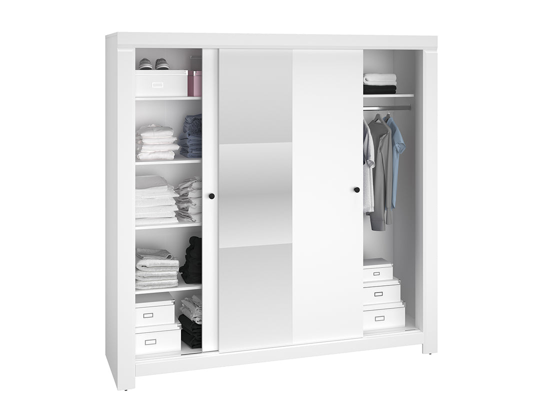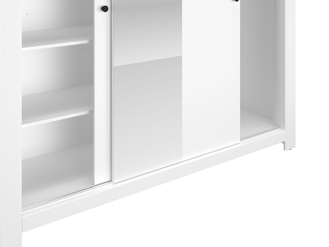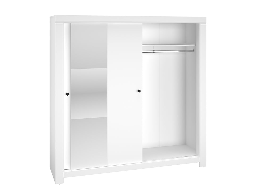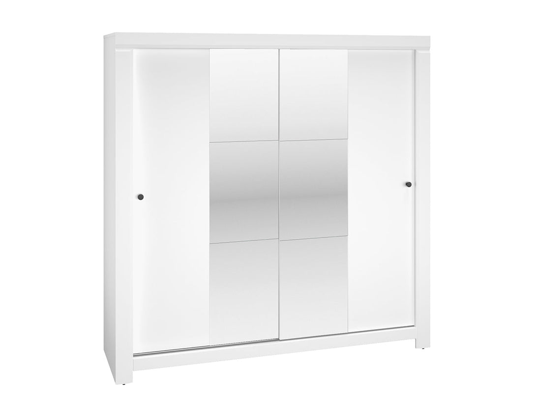 Der LAHTI 01 Kleiderschrank bietet eine elegante Kombination aus Funktionalität und modernem Design. Mit seinem großzügigen Maß von 200 cm Breite und einem praktischen Schwebetürsystem mit Glasanteilen ist er die perfekte Lösung für stilvolle Schlafzimmer.